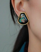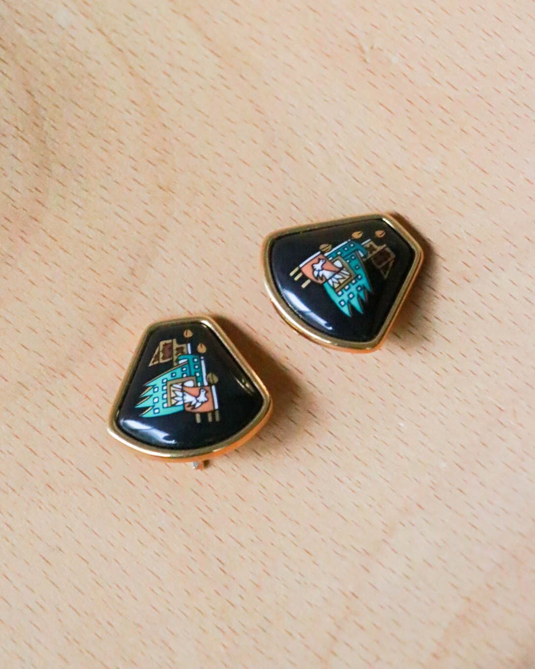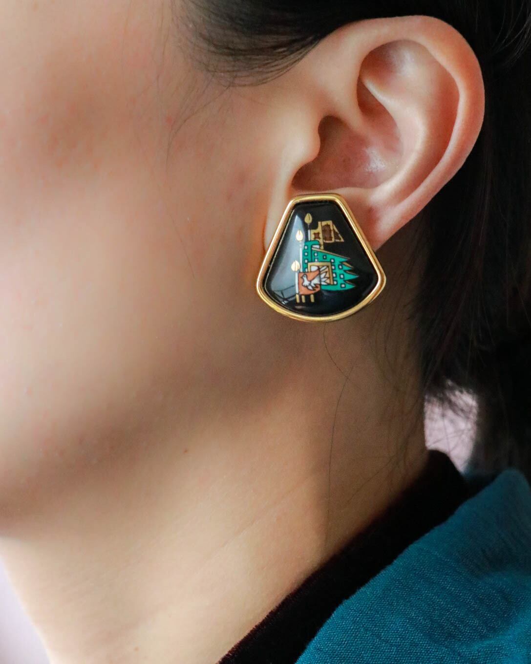 エルメスのエマイユ(七宝焼)シリーズのイヤリングです。鳥や旗のモチーフが描かれたデザイン。