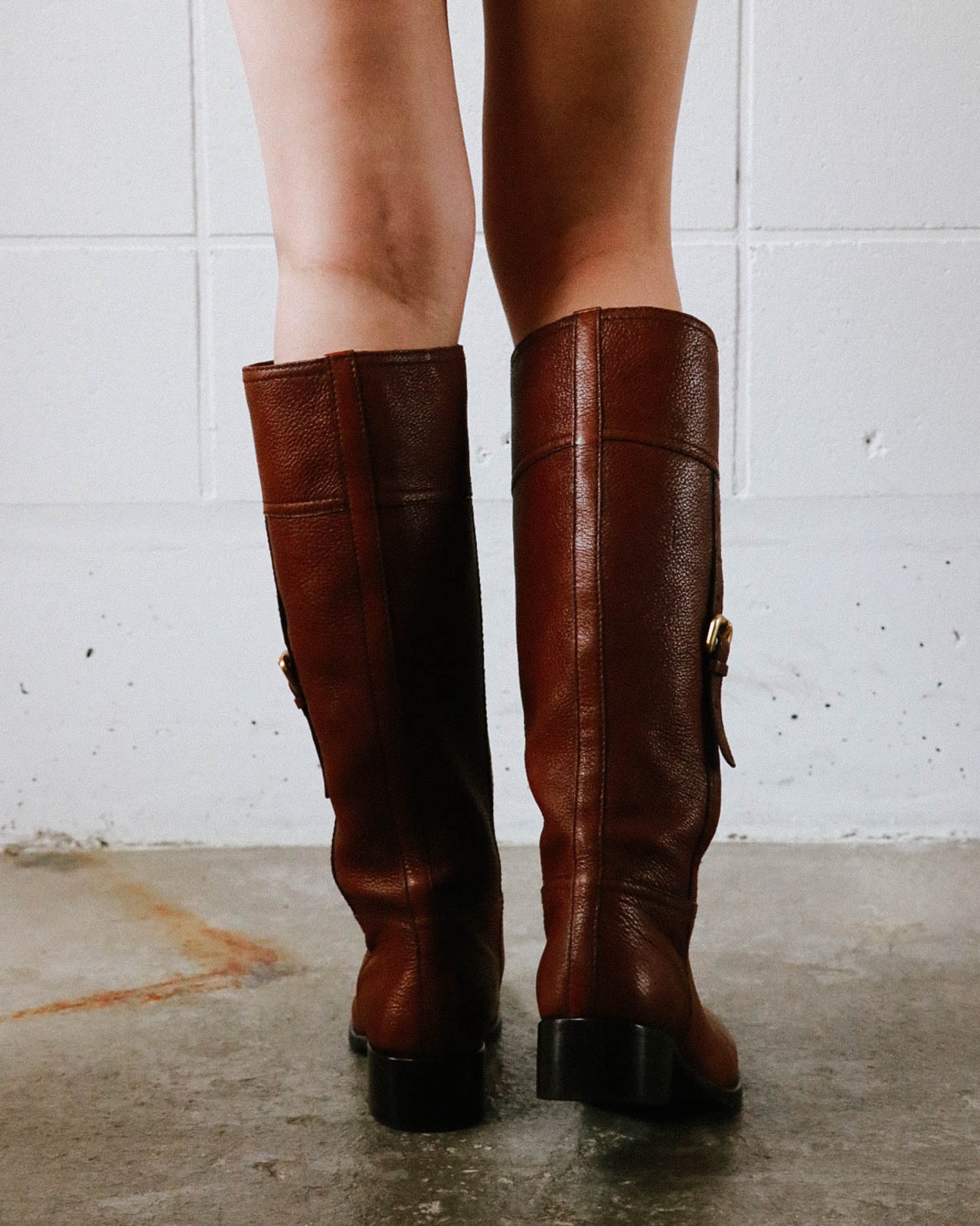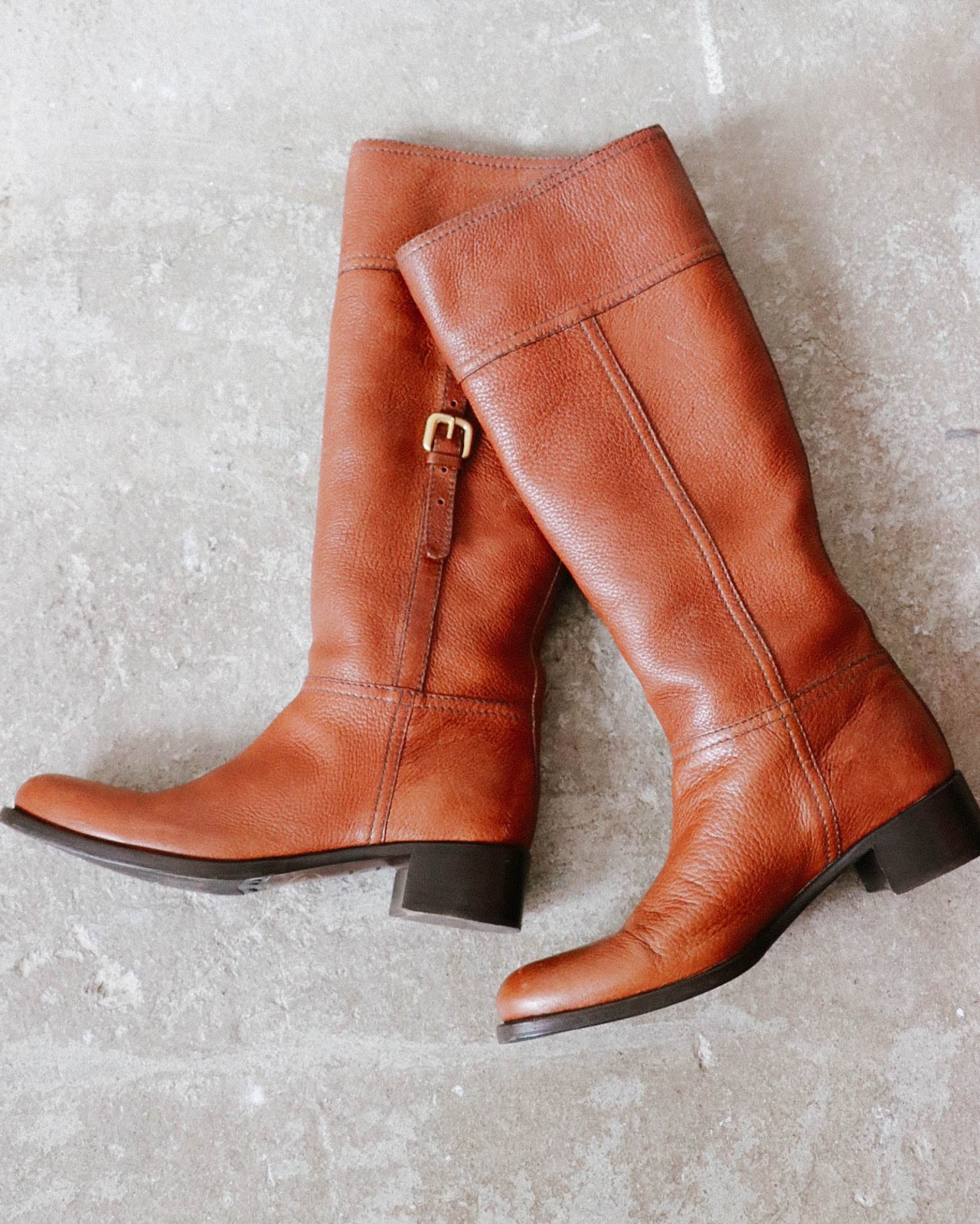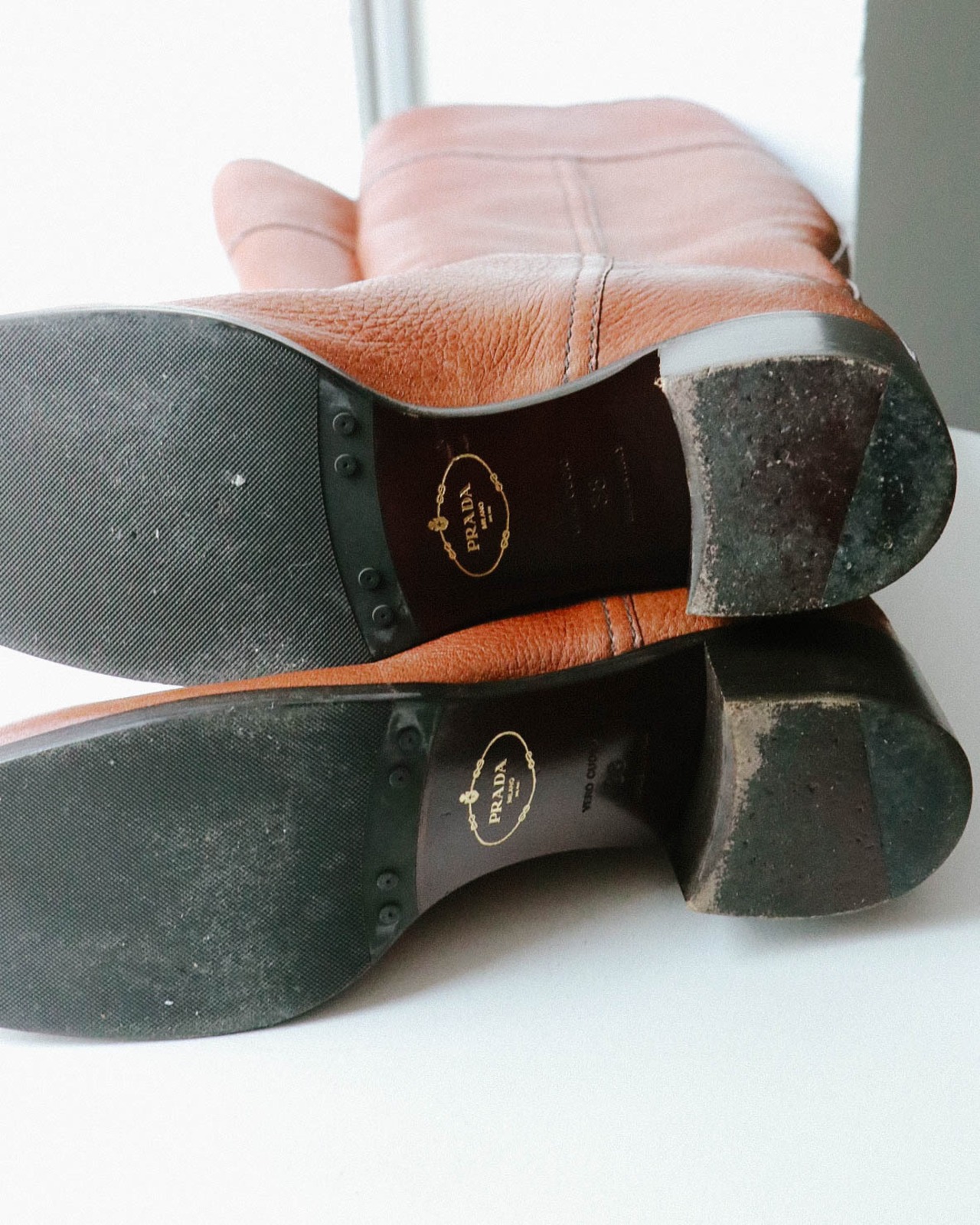 柔らかく上質な型押しレザーのプラダのロングブーツが入荷しました。