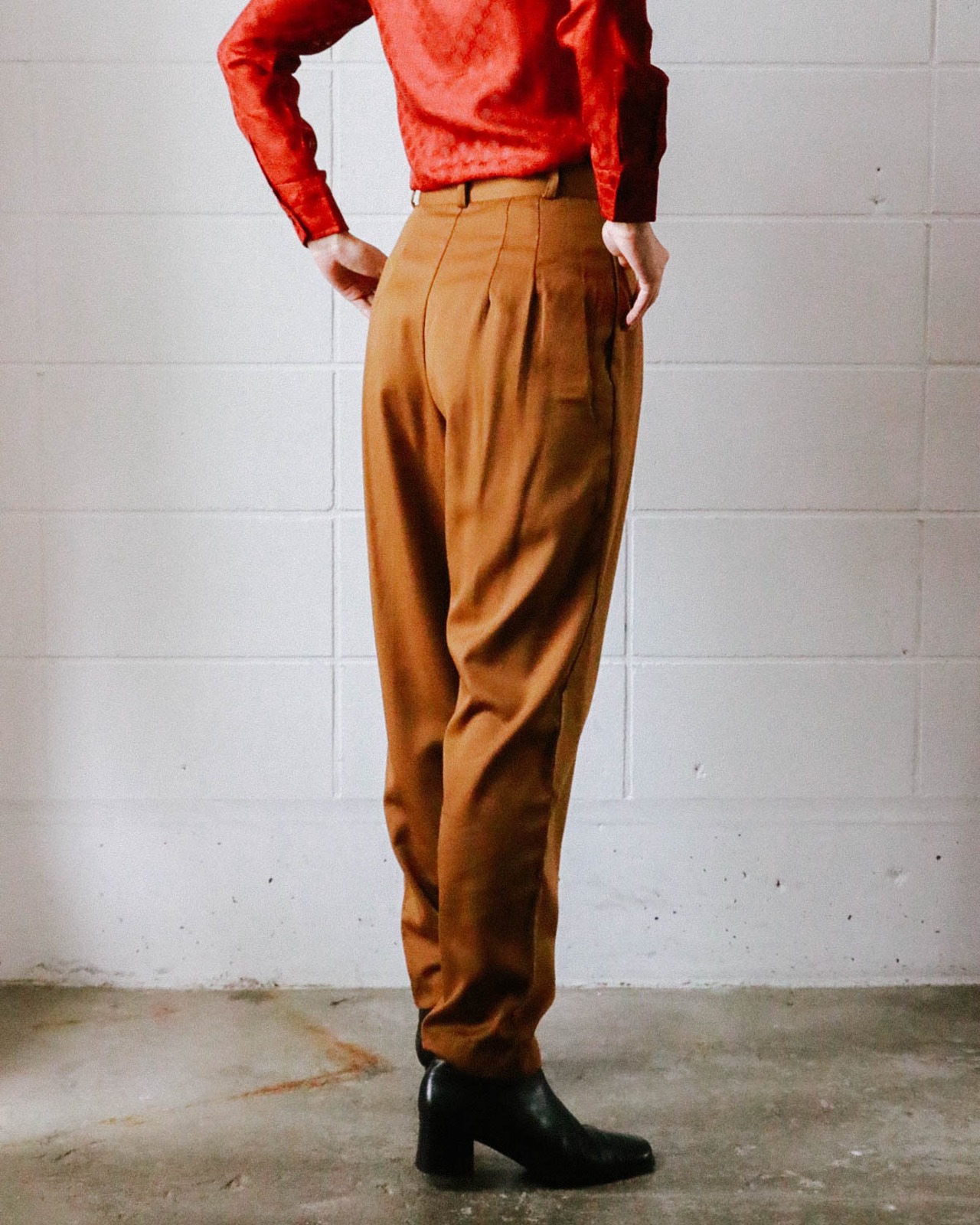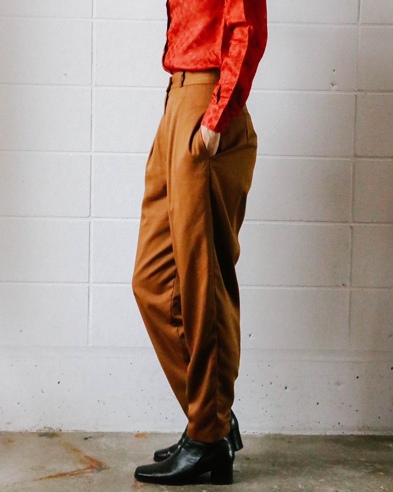 ジャケット(別売りとなります)とセットアップのライトブラウンのパンツ。