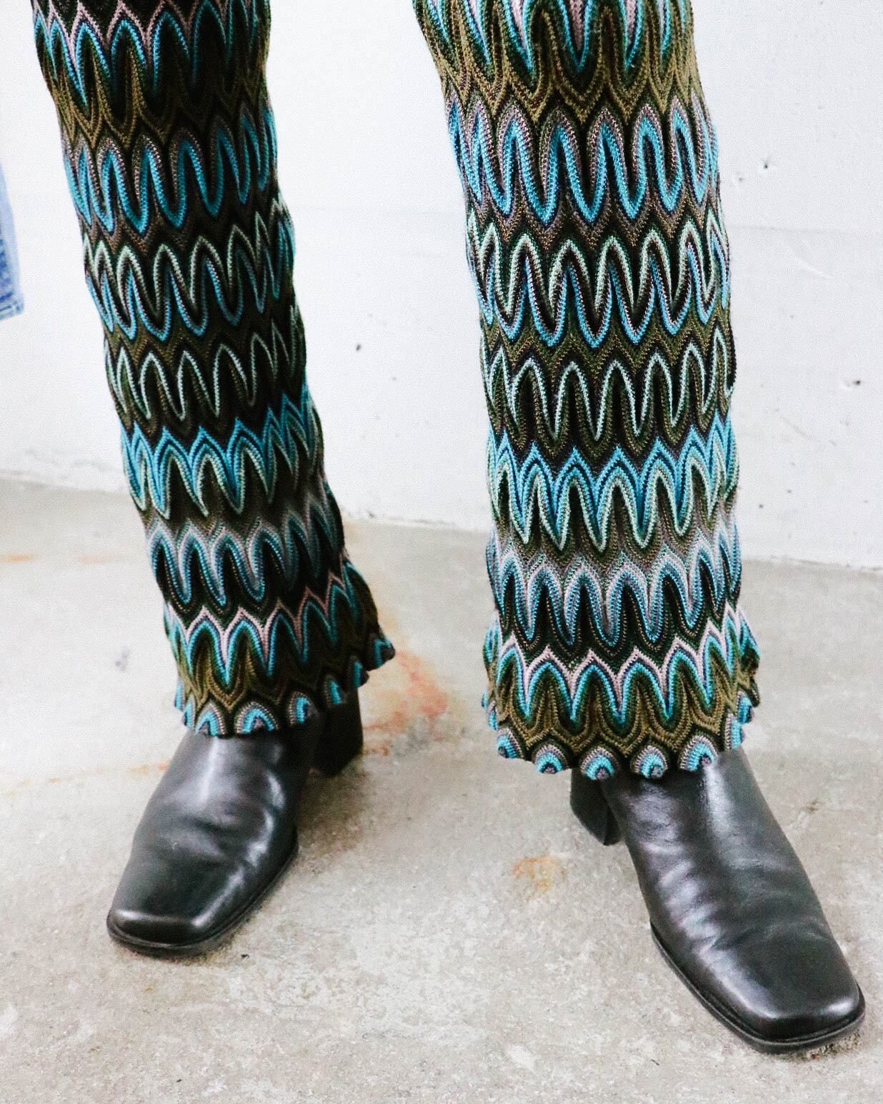 デザインの要になっているミッソーニのアイコン的マルチカラーニット。ブルーをベースにさまざまな色をミックスしつつもきれいにまとまるバランスはさすがのミッソーニ。さらっと着れる薄手のニットパンツはこのシーズンにヘビロテ間違いなし。