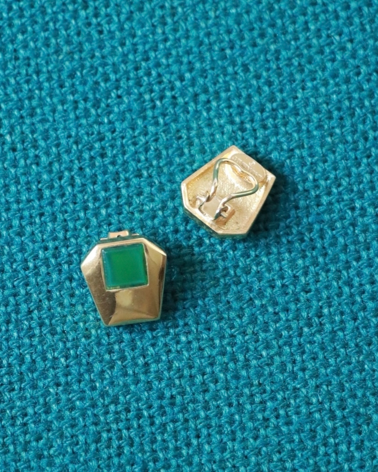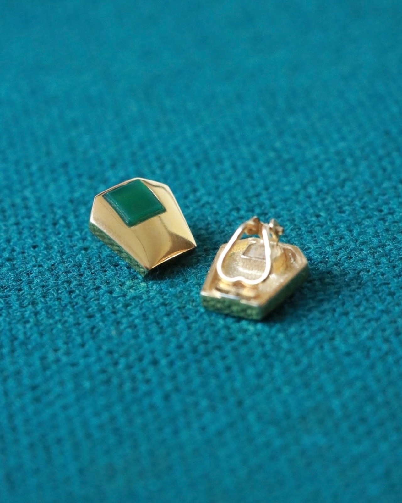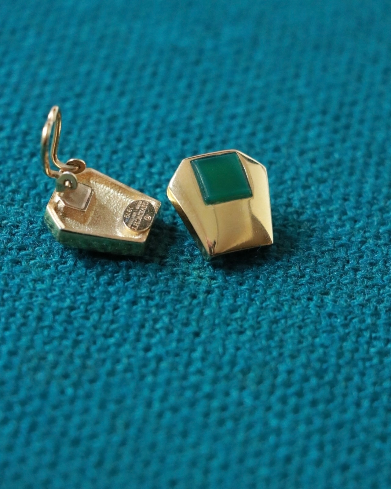 ジバンシーのイヤリングは幾何学なシルエットが特徴的。コーディネートやメイクがシンプルな時にグリーンカラーがちょうど良いアクセントに。程よいサイズ感で上品にまとめてくれます。