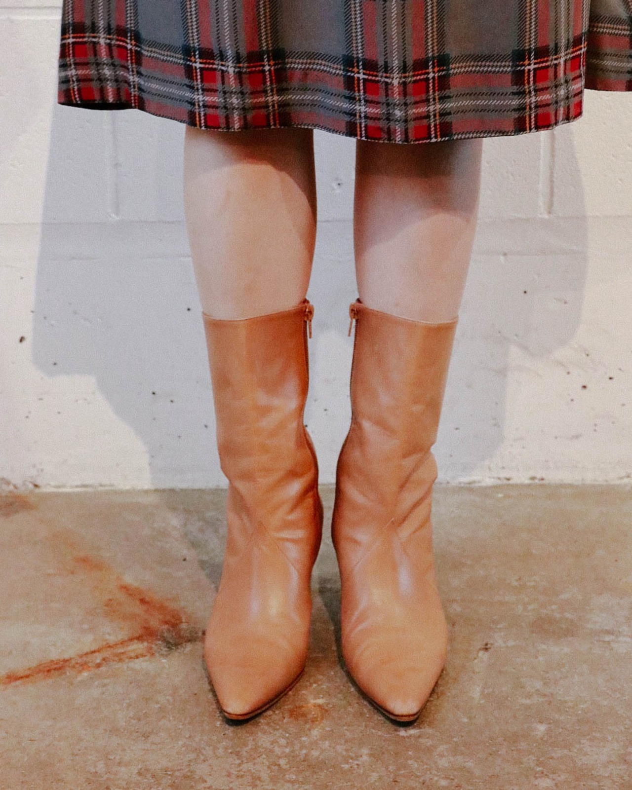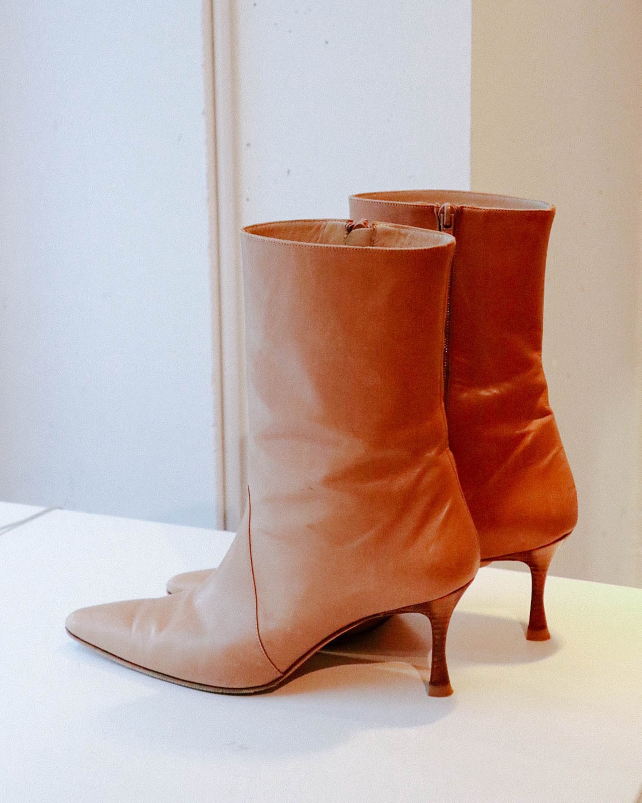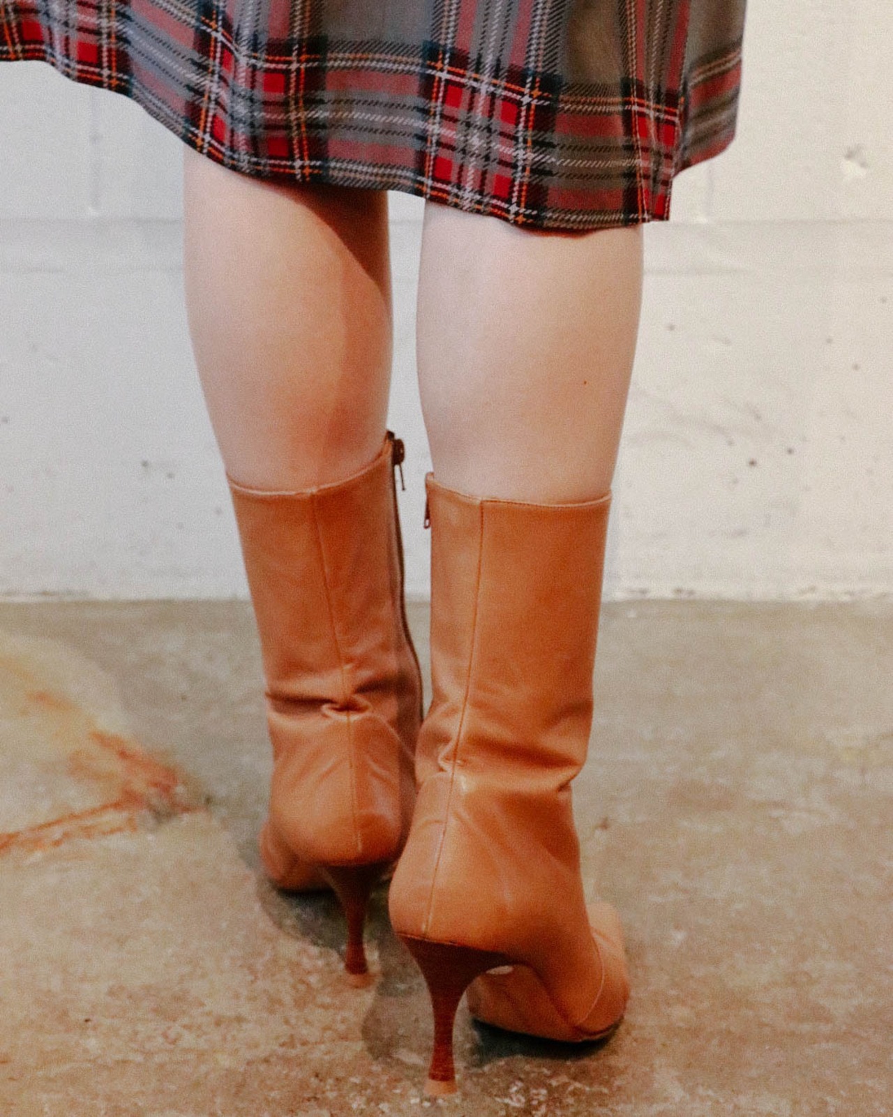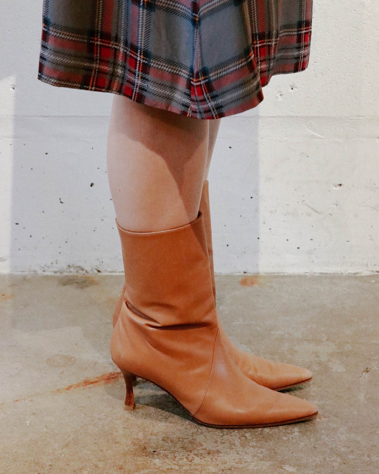 美しいシルエットのポインテッドトゥでエレガントな装いにあいます。