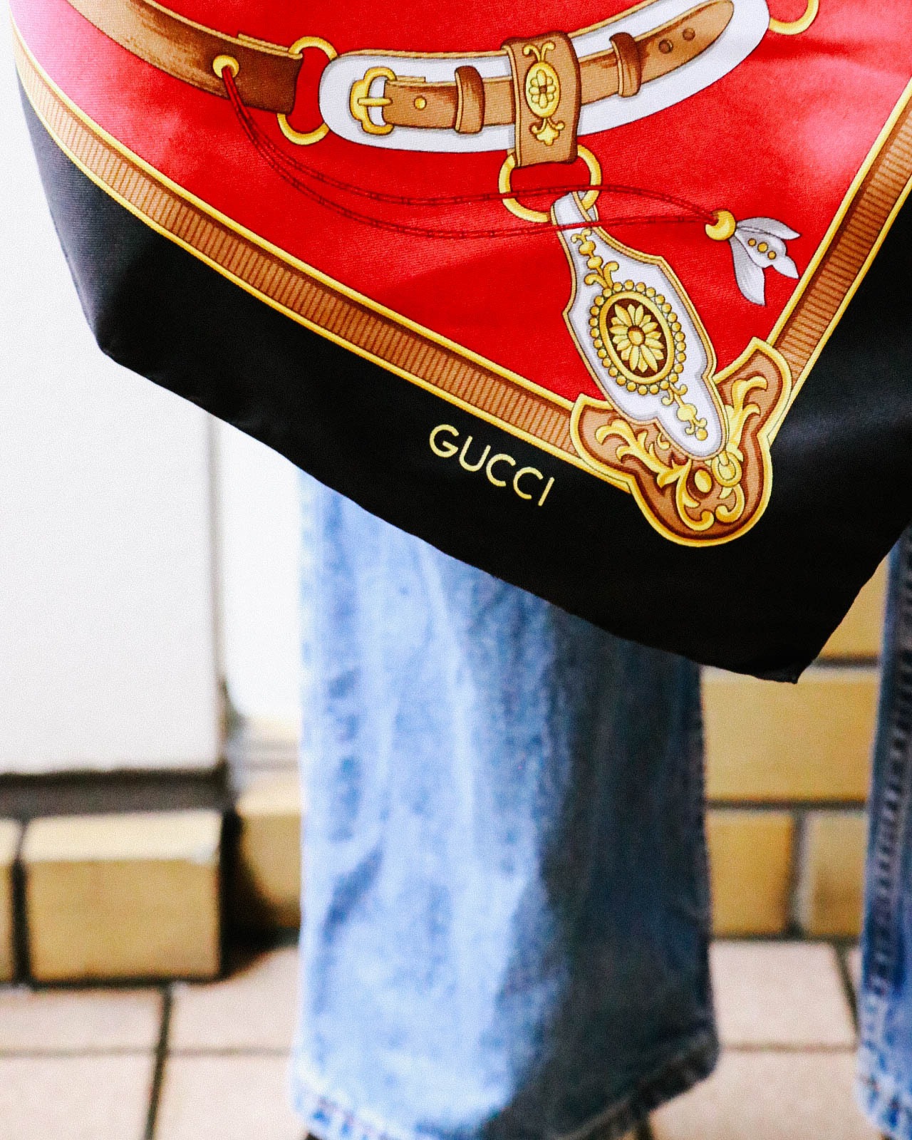 渡鳥たちの絵柄が愛らしいグッチのシルクスカーフが入荷しました。