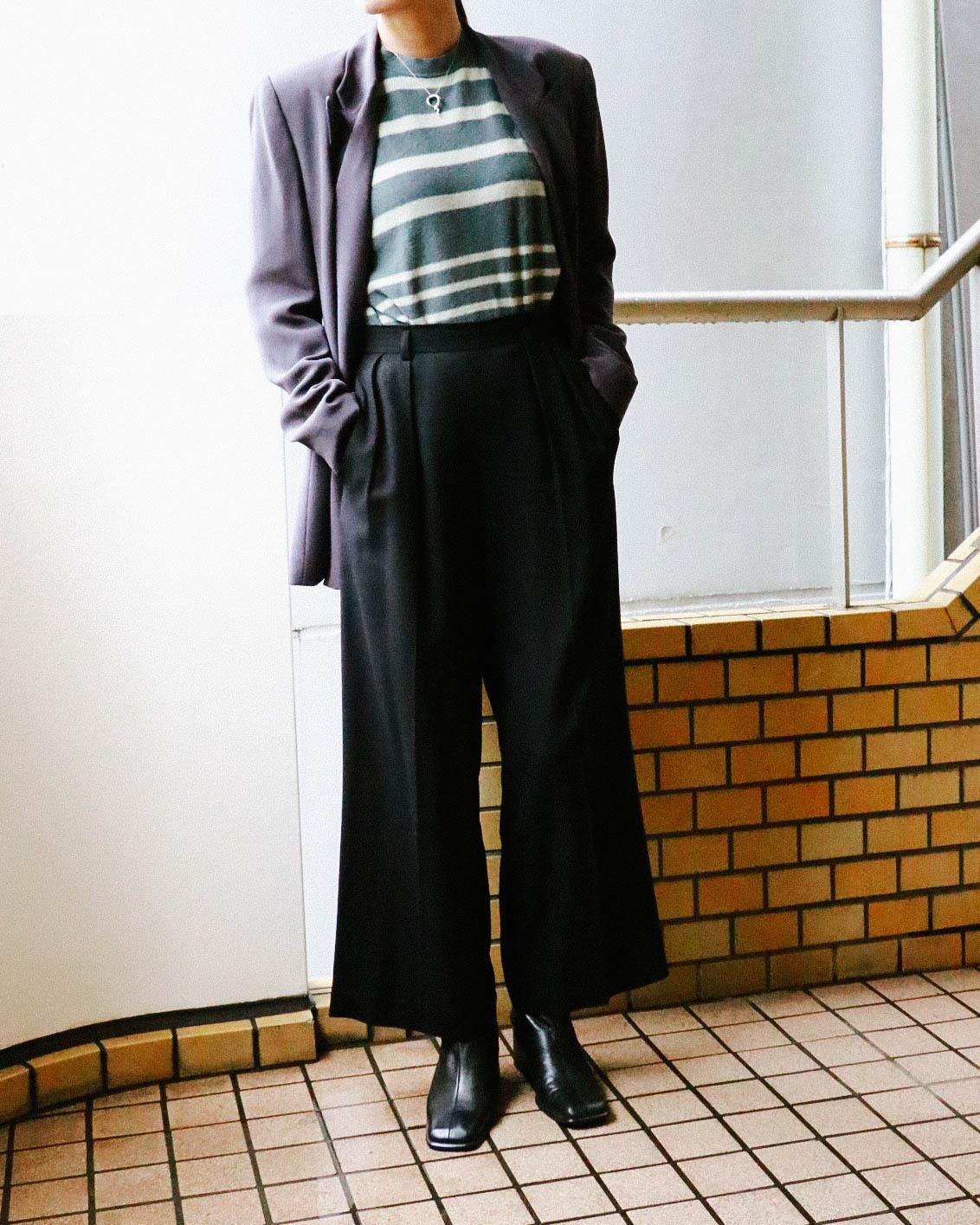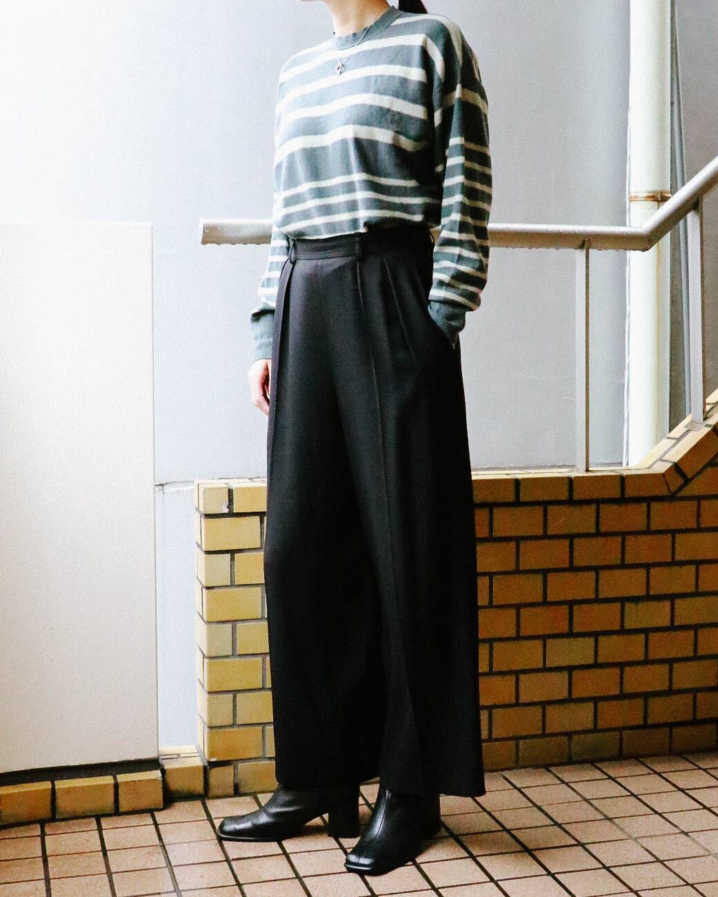 モードな雰囲気のハイウエストxワイドシルエット、心地よい上質な素材でデイリーから