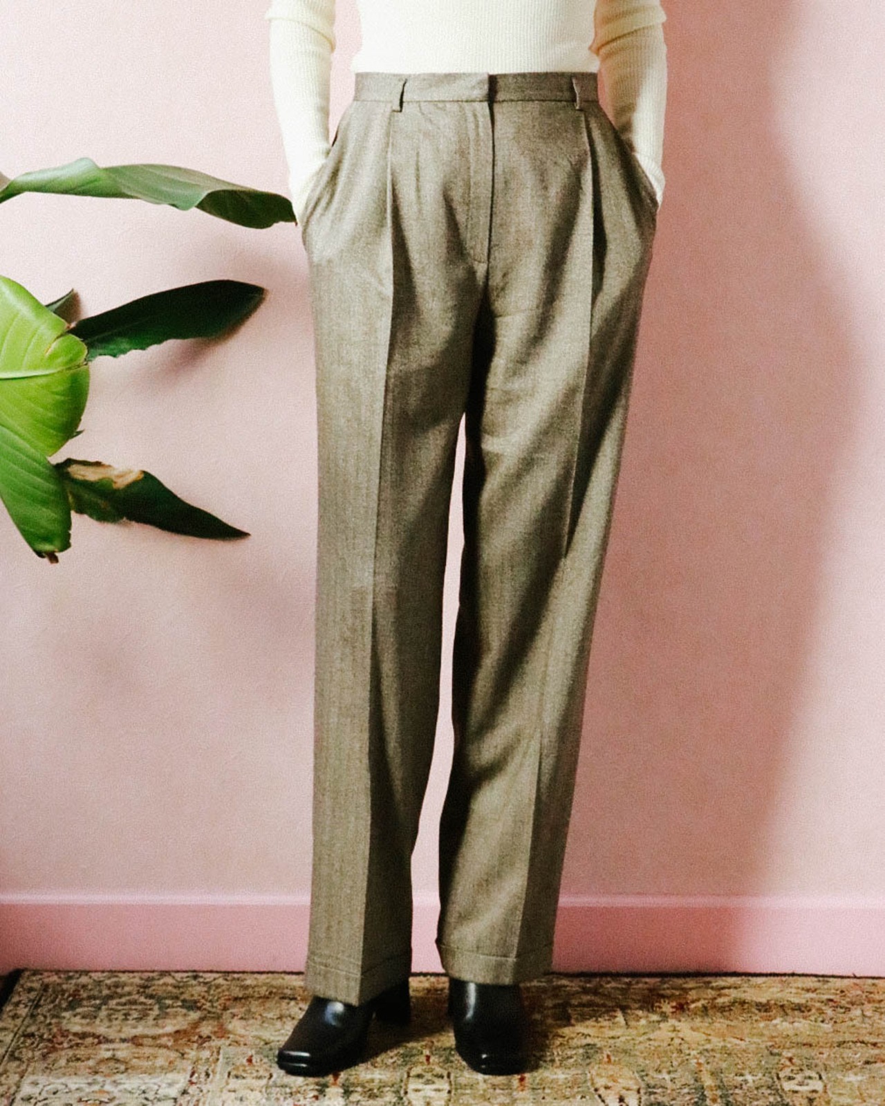 ストレートシルエットながらも程よい太さが今の気分にハマるパンツ。ウール混のしっかりとした素材で防寒も期待ができ、普段着としてヘビーユースしたい。