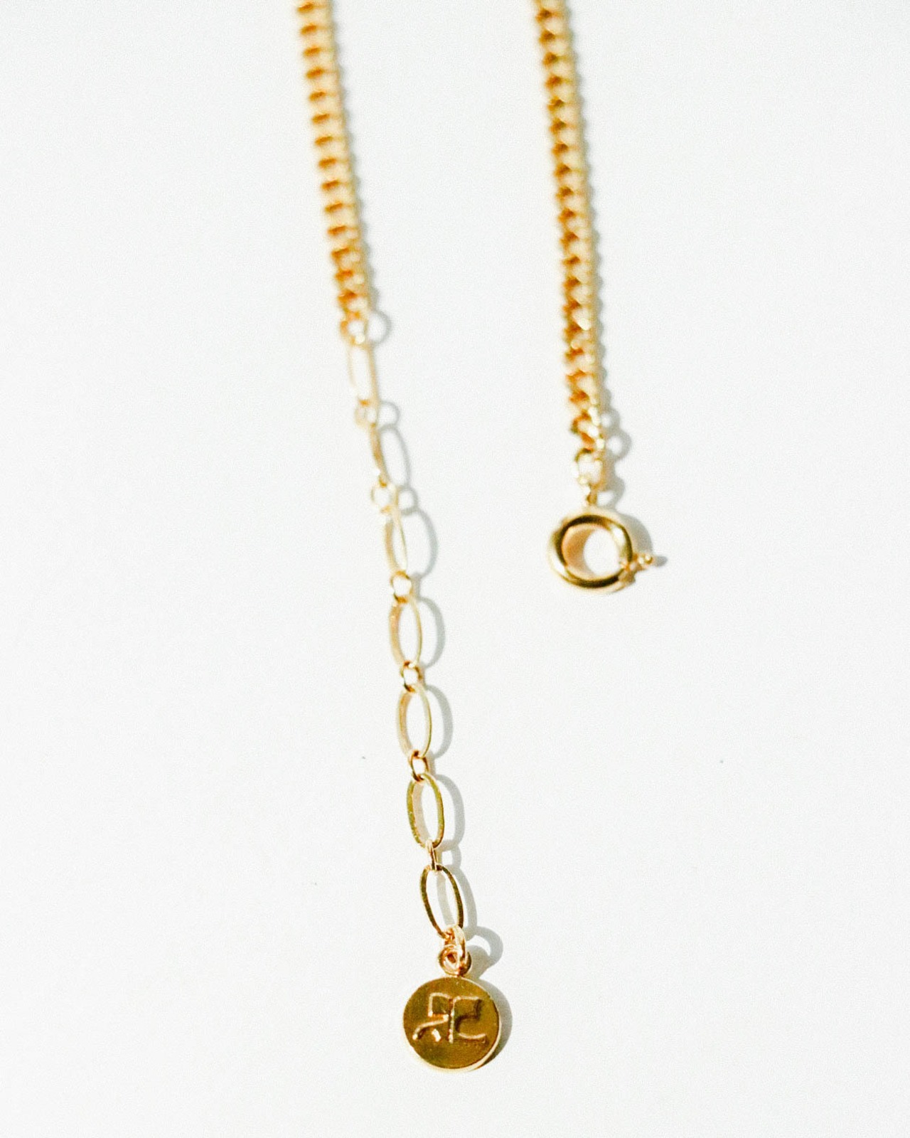 クレージュロゴがポイントのロングネックレスが入荷しました。存在感ある大きめモチーフが、首元を華やかに彩ります。暗くなりがちな秋冬コーデはアクセサリーをプラスして、お洒落度を上げたいアイテム。