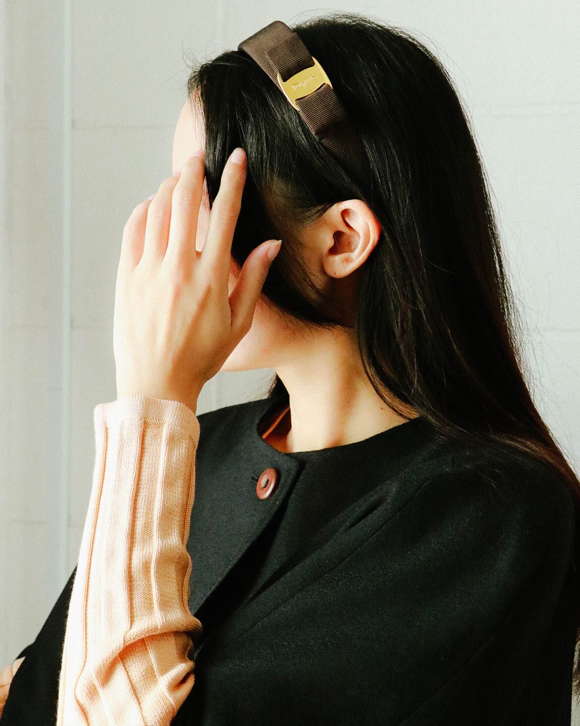 女性だからこそ楽しめるヘアーアクセサリー。こちらはフェラガモのアイコンであるヴァラシリーズ。可愛いリボンが特徴でゴールドのロゴモチーフがどんなヘアスタイルにもはまります。