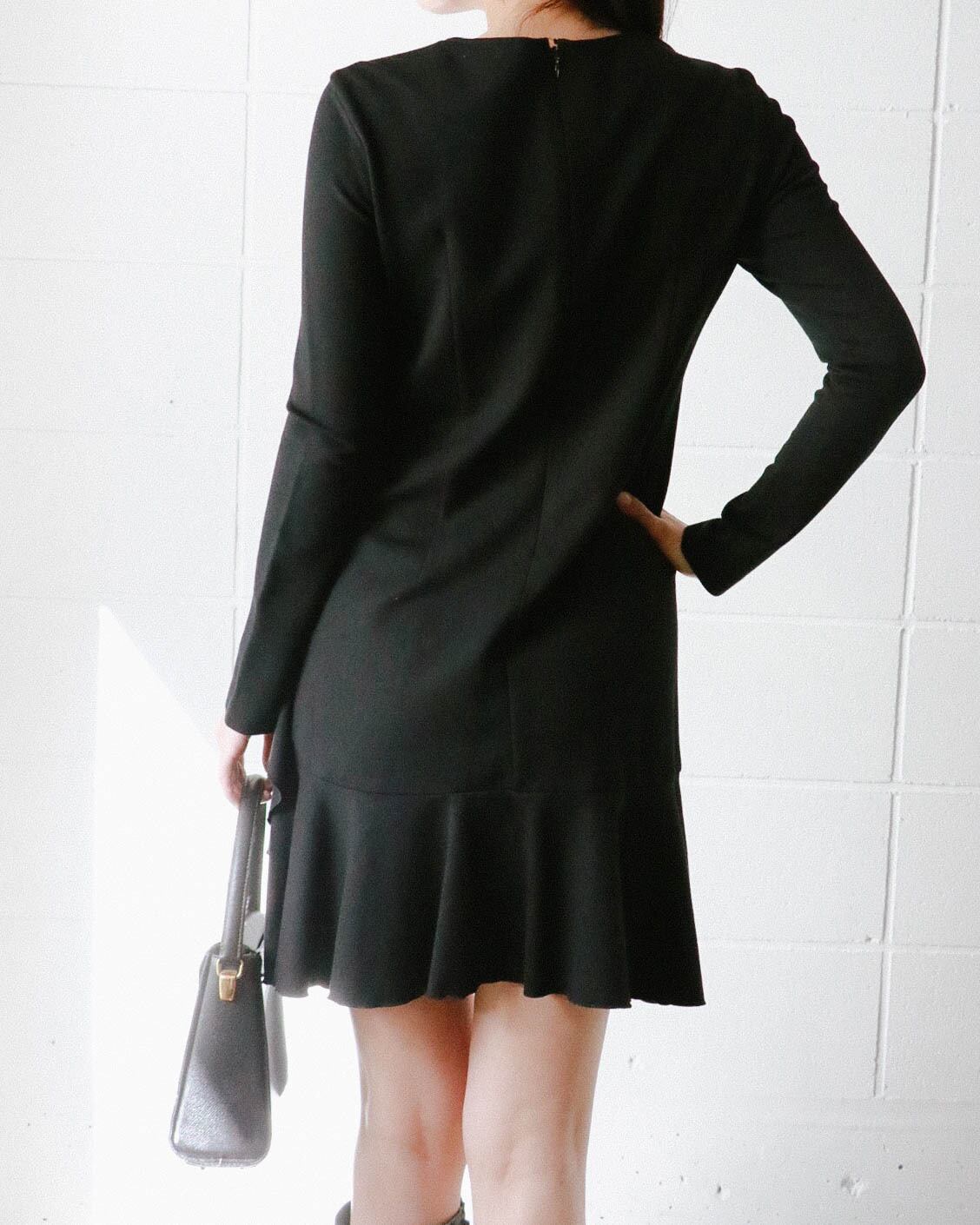 アシンメトリーなスカート裾、ウエストの美しいライン、細部のディテールまで拘りの詰まった一枚。