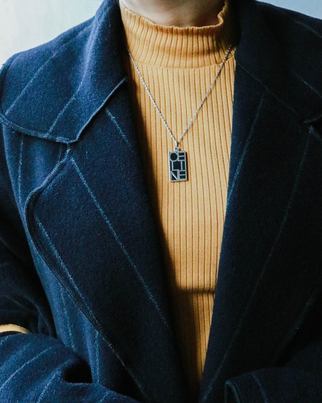 セリーヌの文字がデザインされたプレート型のネックレス。