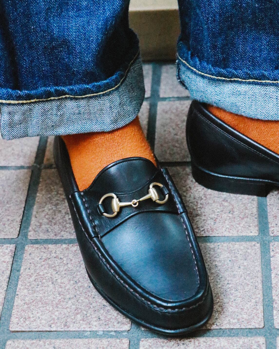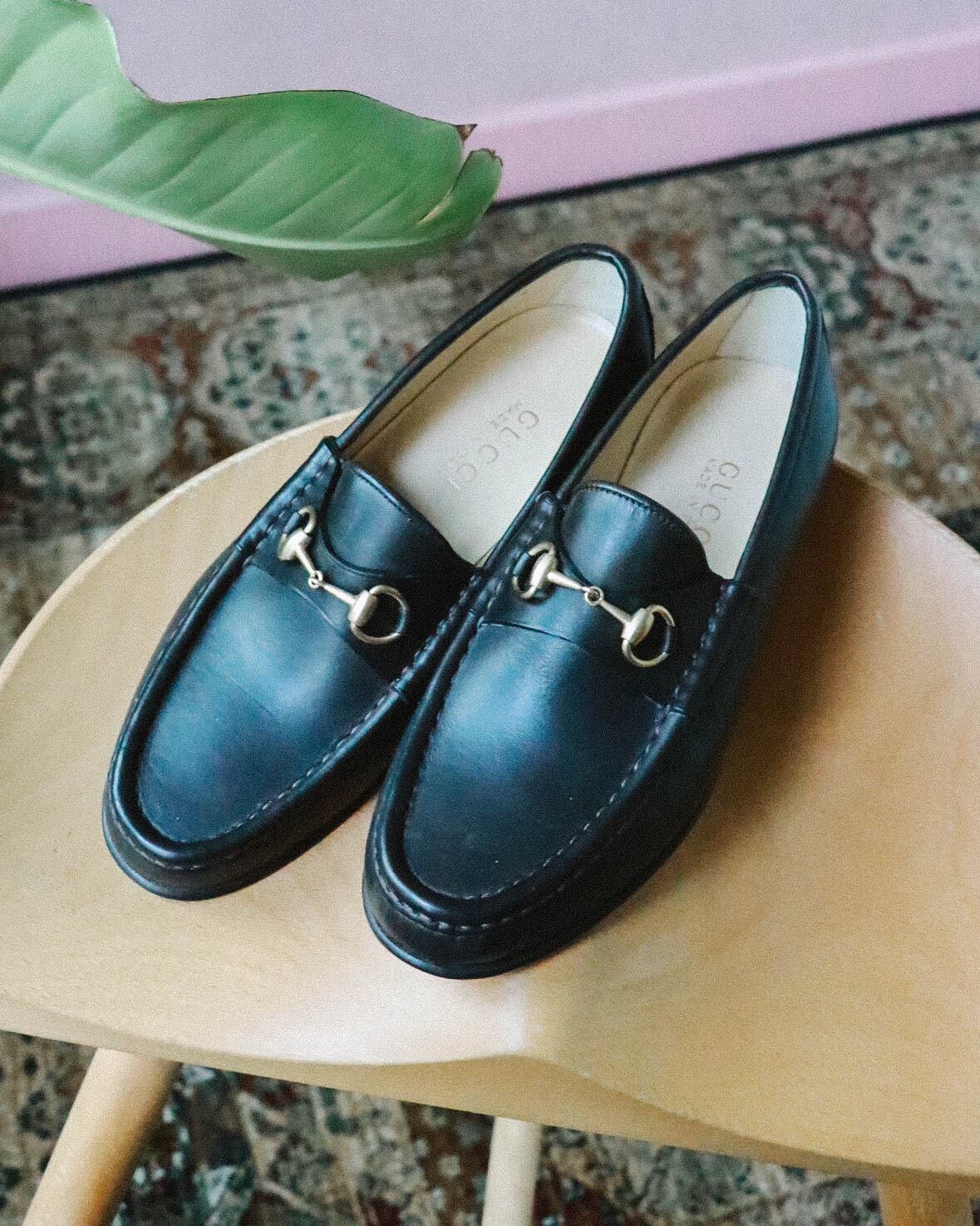 グッチのビットローファー。ブラックに程近いブラウンカラーです。