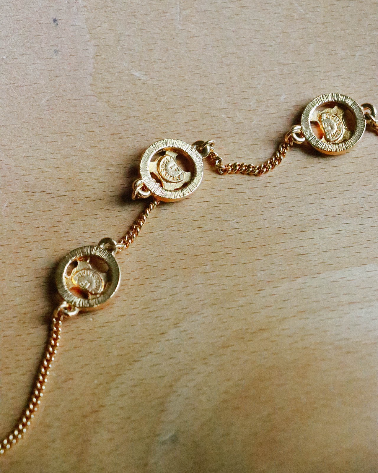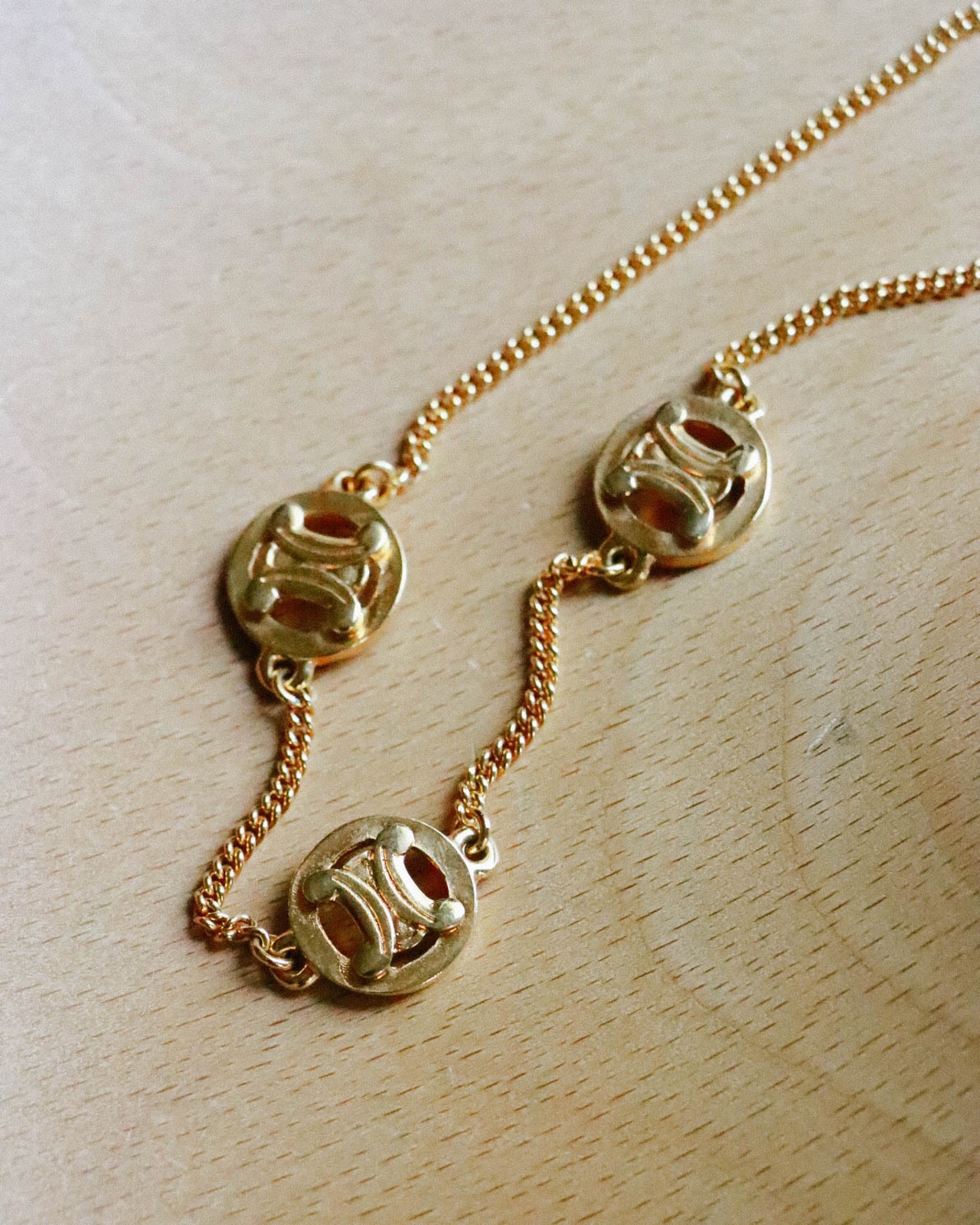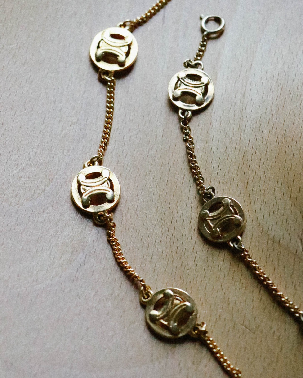 ラウンドロゴモチーフが連なったセリーヌのゴールドネックレス。