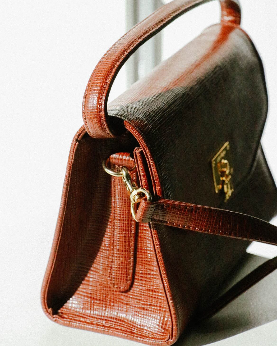 こちらはめずらしいブラウンカラー。ハンドバッグとしてもショルダーバッグとしても使えるので、さまざまなオケージョンで活躍まちがいなし。