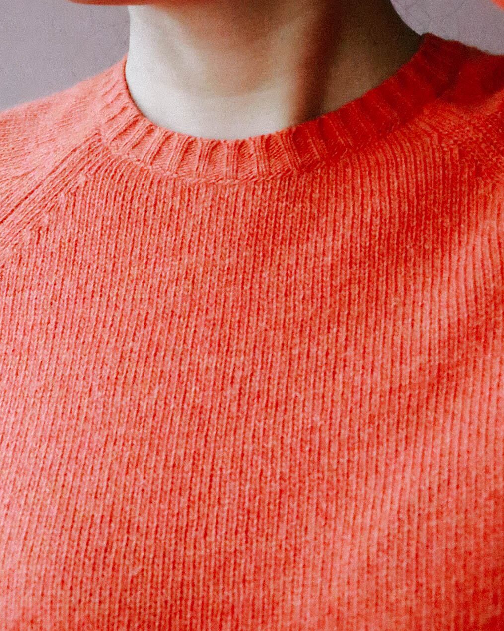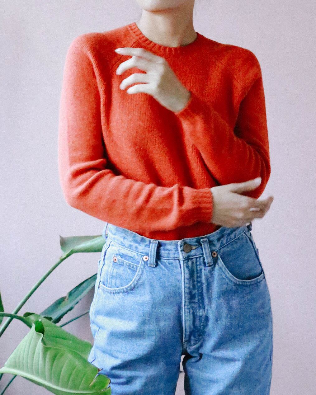 ざっくりとした着心地のいいミドルゲージ、ほどよい首の詰め方、デイリーに一番着やすいタイプではないでしょうか。コートからのぞくフレッシュなアクセントカラーとしても合格です!
