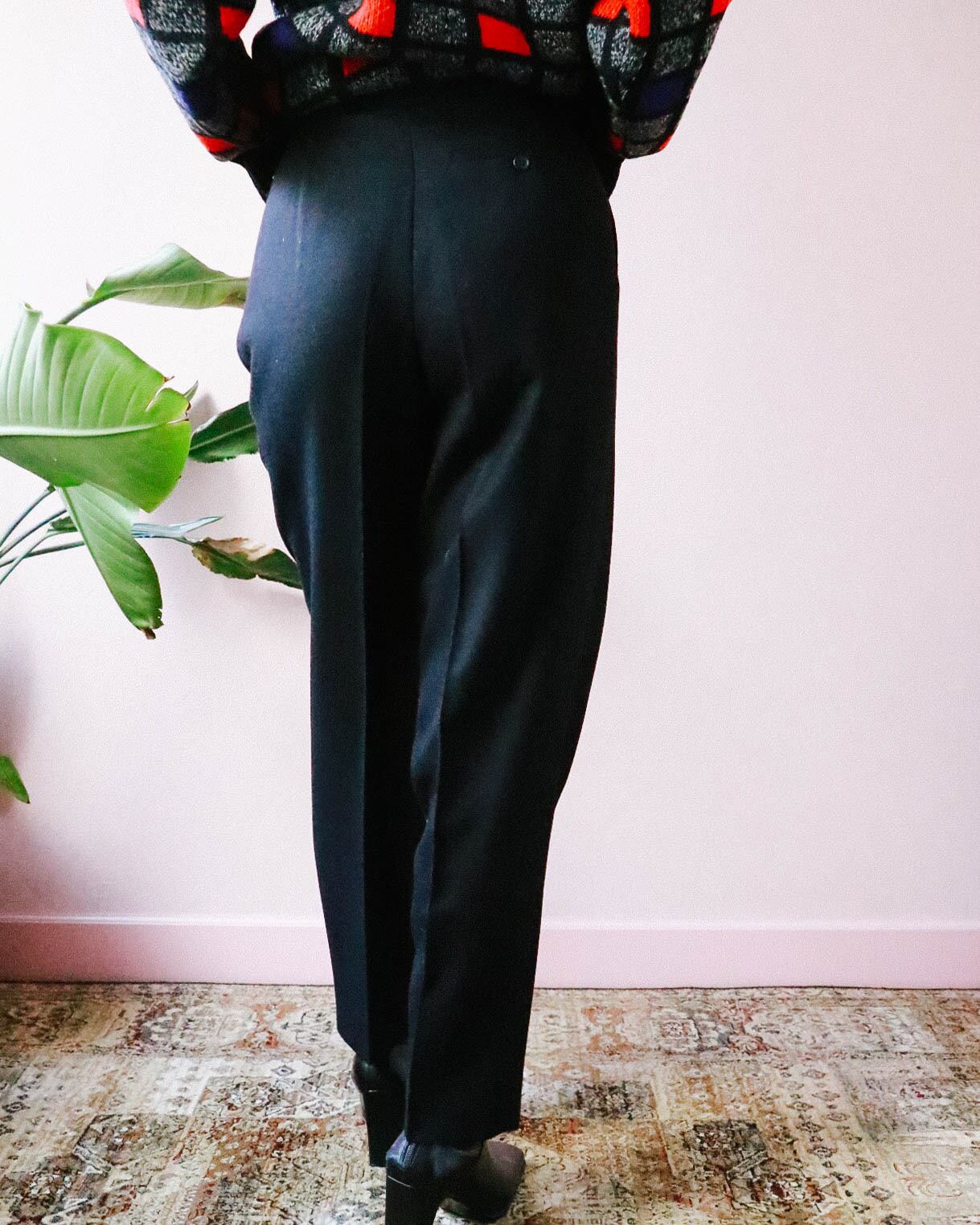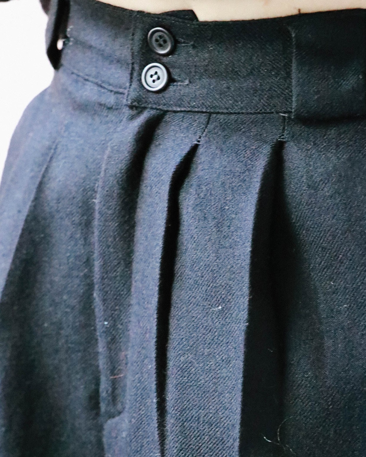 ハイウエストでとても軽やか。腰まわリはゆったり、裾に向かって細くなるテーパードパンツが入荷しました。通年出番の多いブラックパンツですが、こちらはウール素材で今時期にぴったりです。きれいなダブルタックで動きやすいデイリーにもとても向いています。