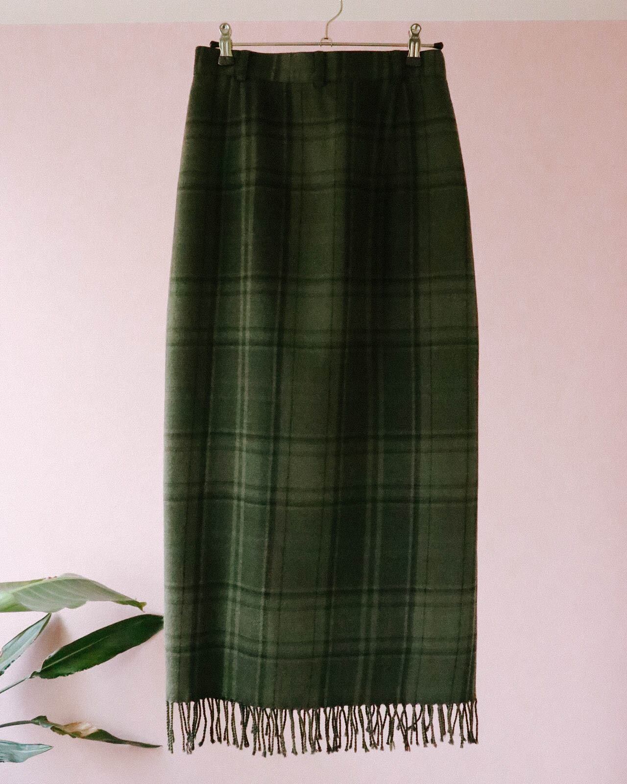 ありそうでない、柔らかく美しいグリーンカラーのラップデザインスカート。