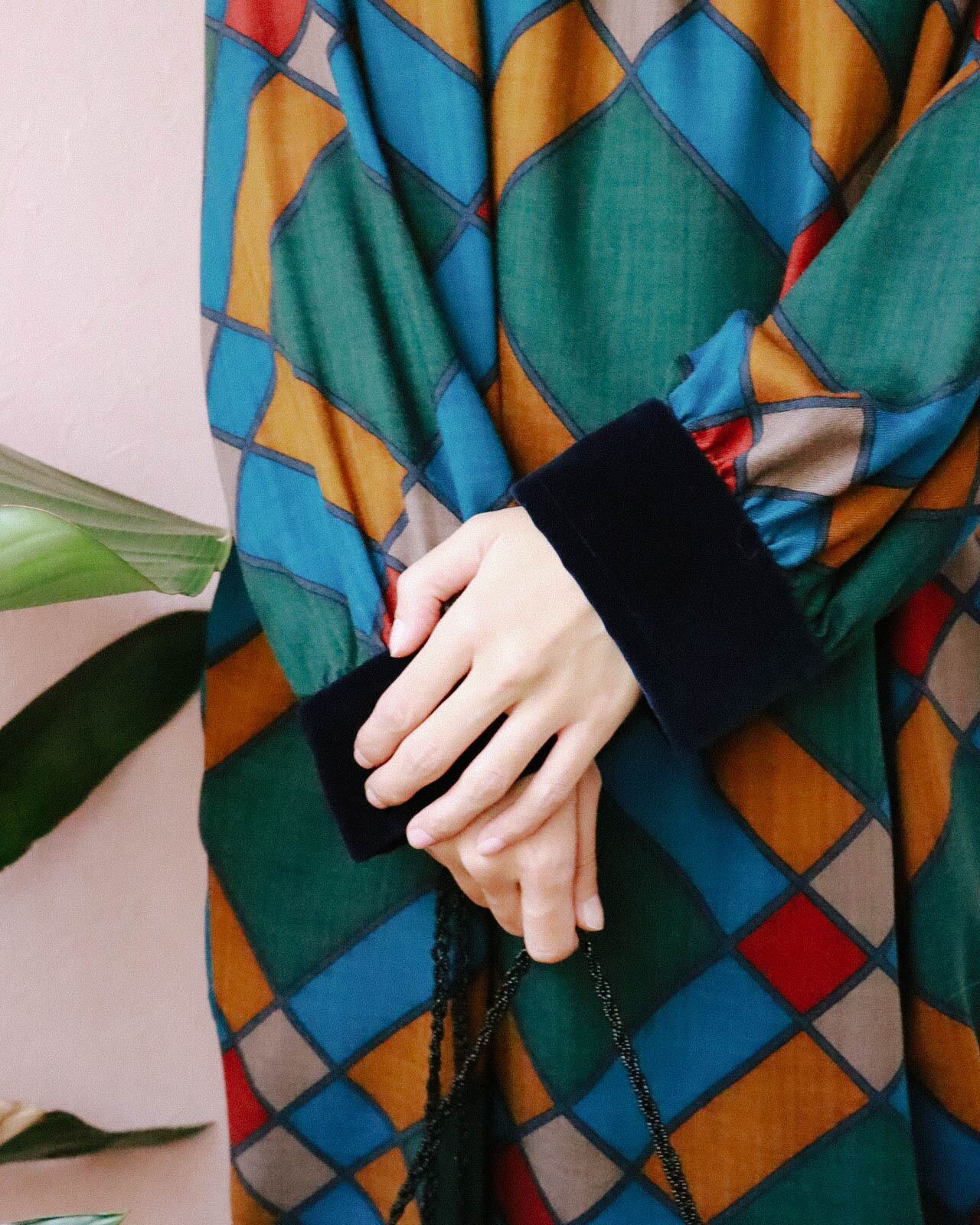 ボリュームのあるアームに贅沢に生地を使用したボディ、そしてなんといってもカラフルなチェック柄に心ときめくデザインです。