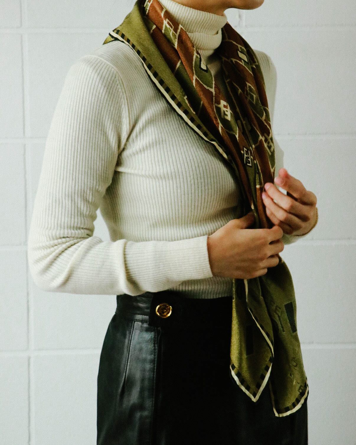 フェンディのスカーフが入荷しました。とても柔らかで滑らかな手触り感。大判スカーフはいろんな巻き方でアレンジしてコーディネートに華を添えたい。