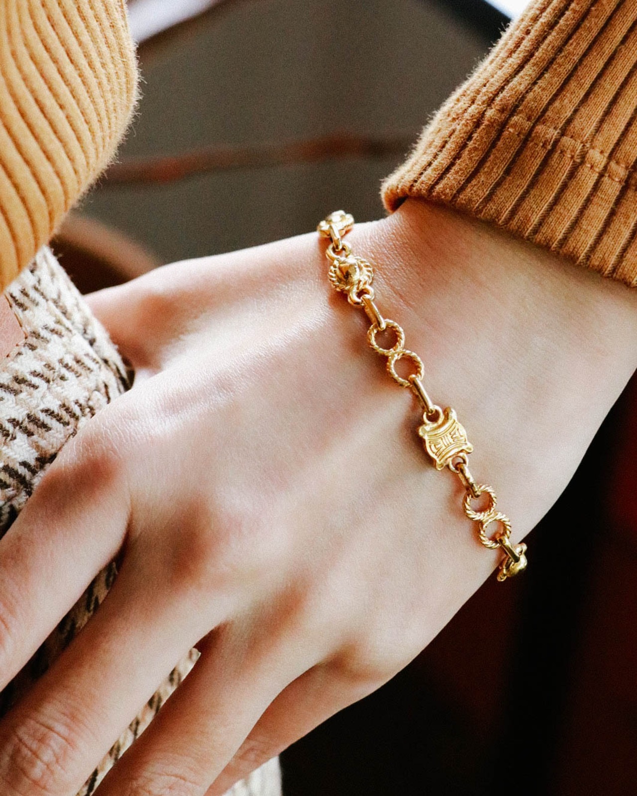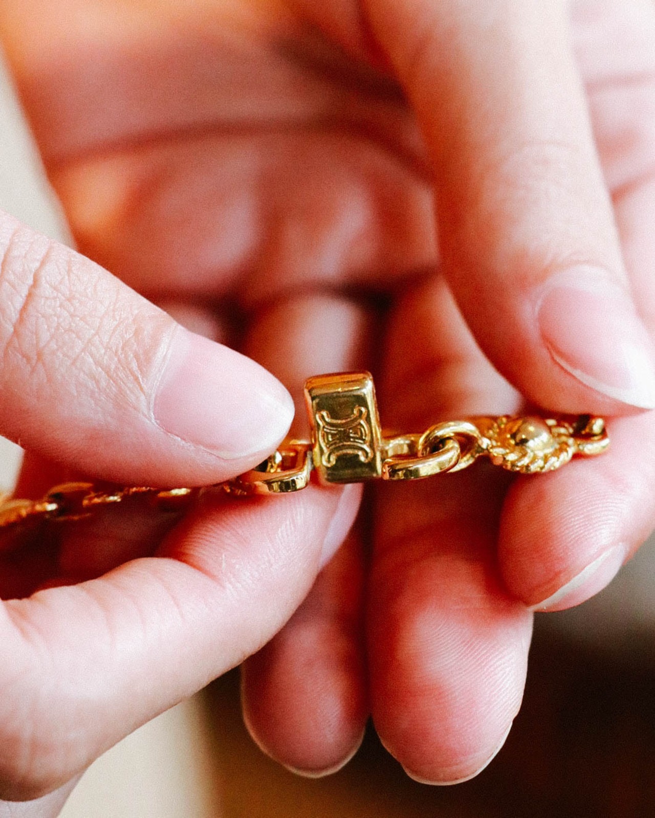 セリーヌのデザインチェーンブレスレット。