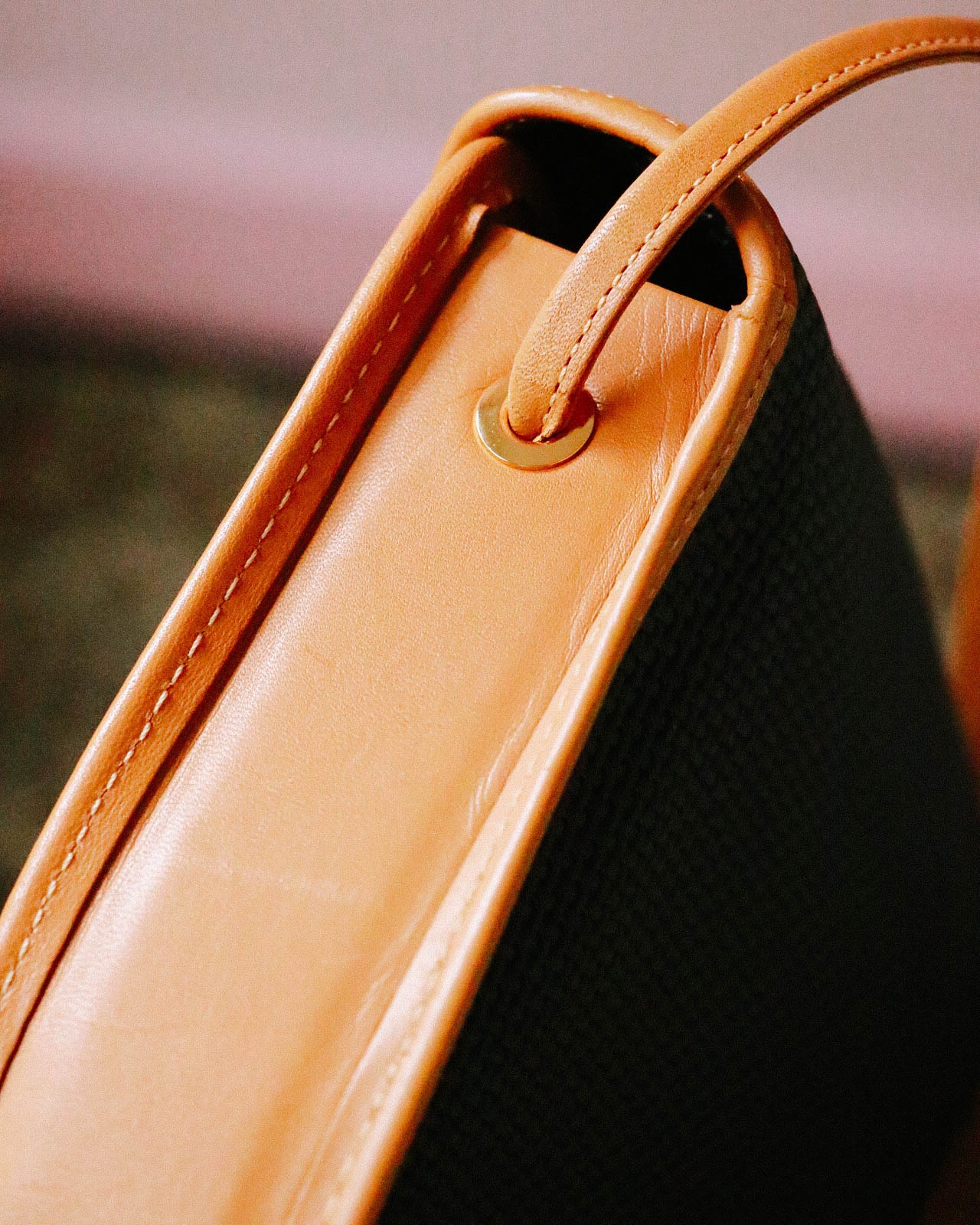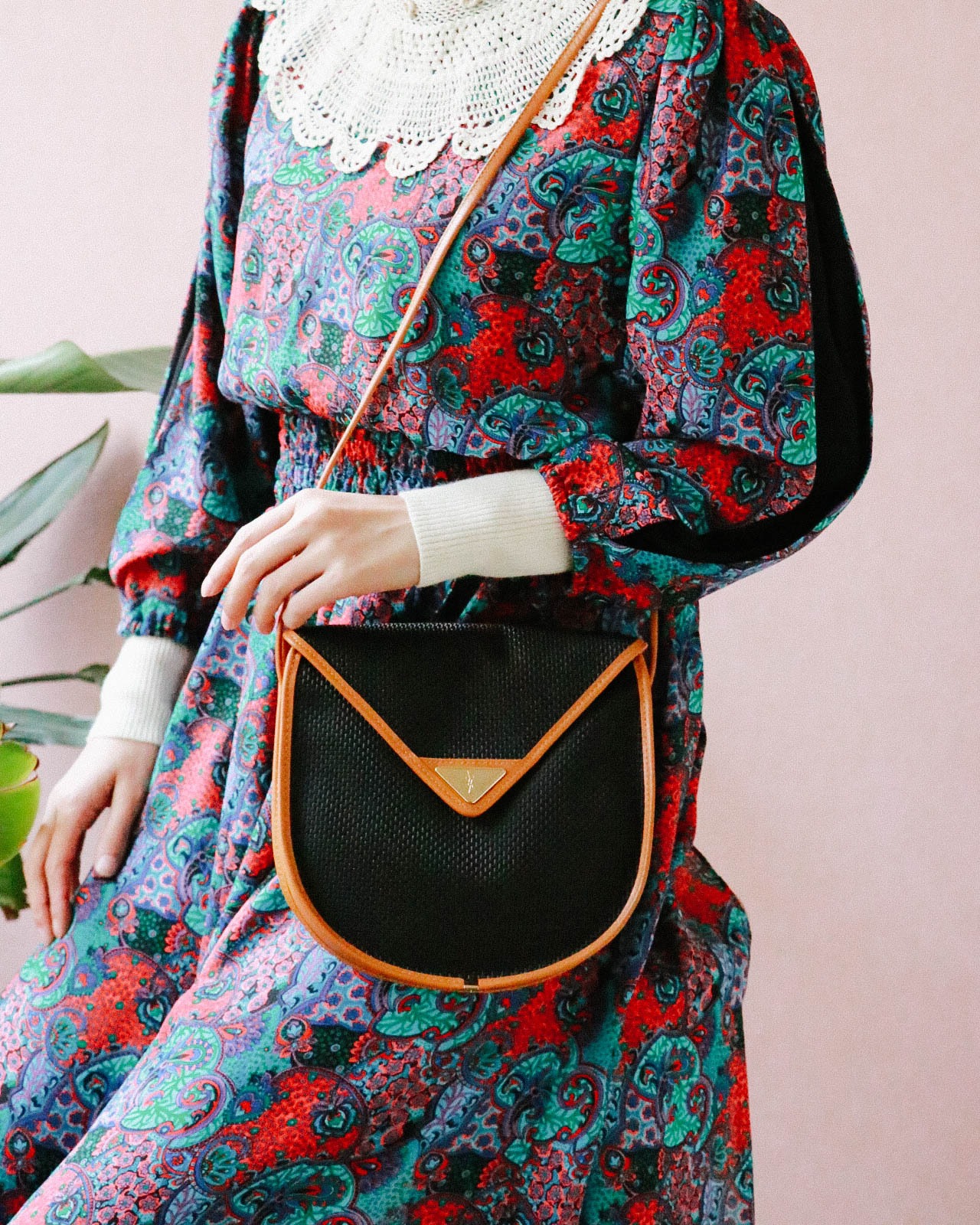 耐久性に優れたPVC素材とレザーを組み合わせたイブサンローランのメッシュショルダーバッグ。華奢なショルダー紐とさりげないロゴ金具が上品な印象。使い回しの利く丁度良いサイズ感で、幅広いシーンで活躍します。