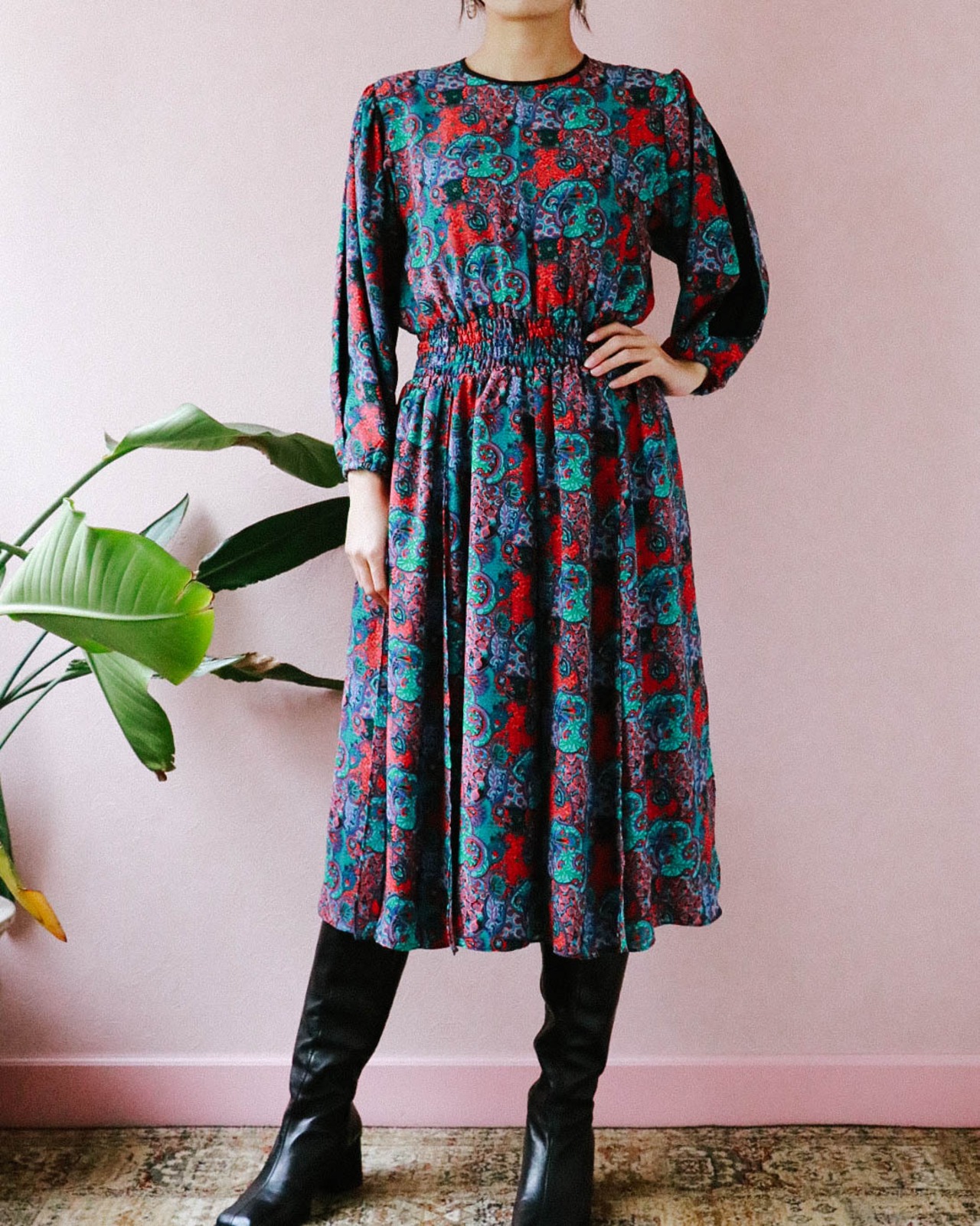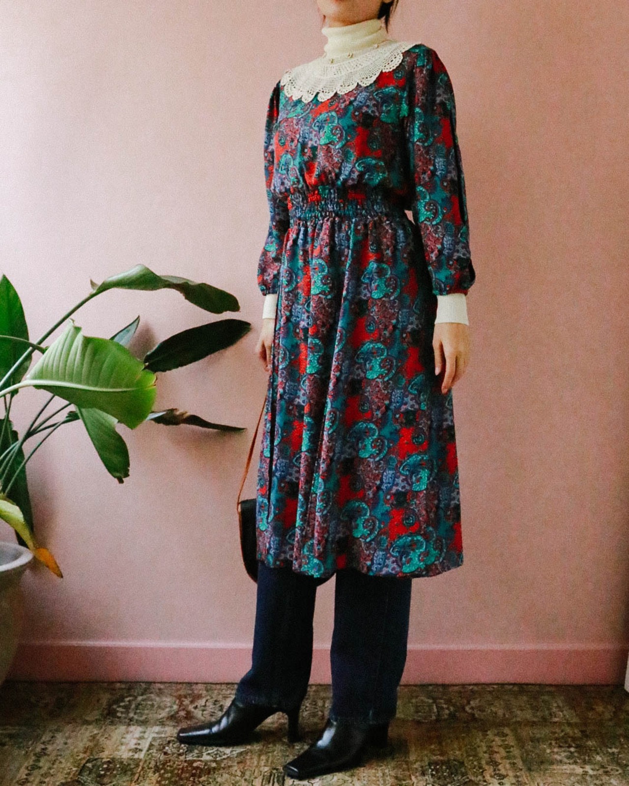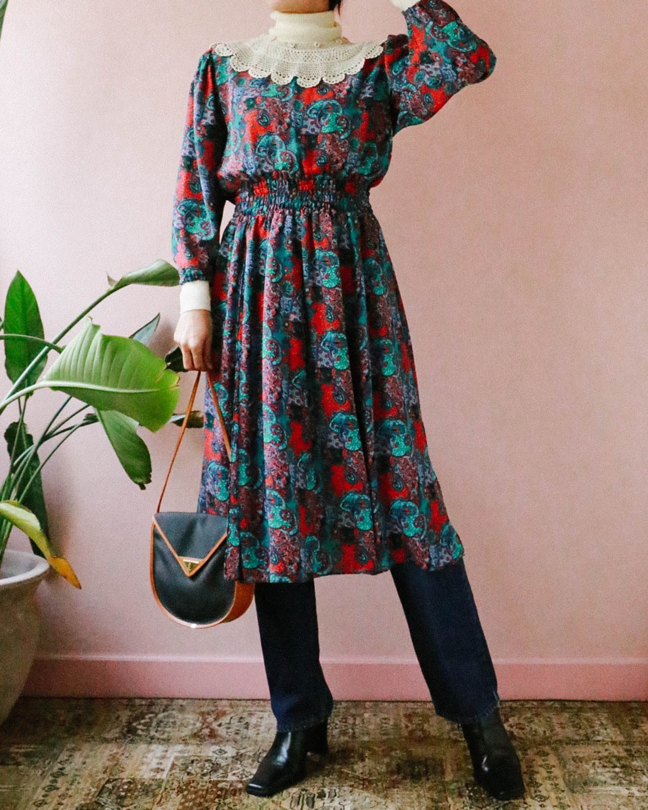 レトロ感溢れるフェミニンなシルエットが美しいこちらのドレスはDiane Freisのもの。