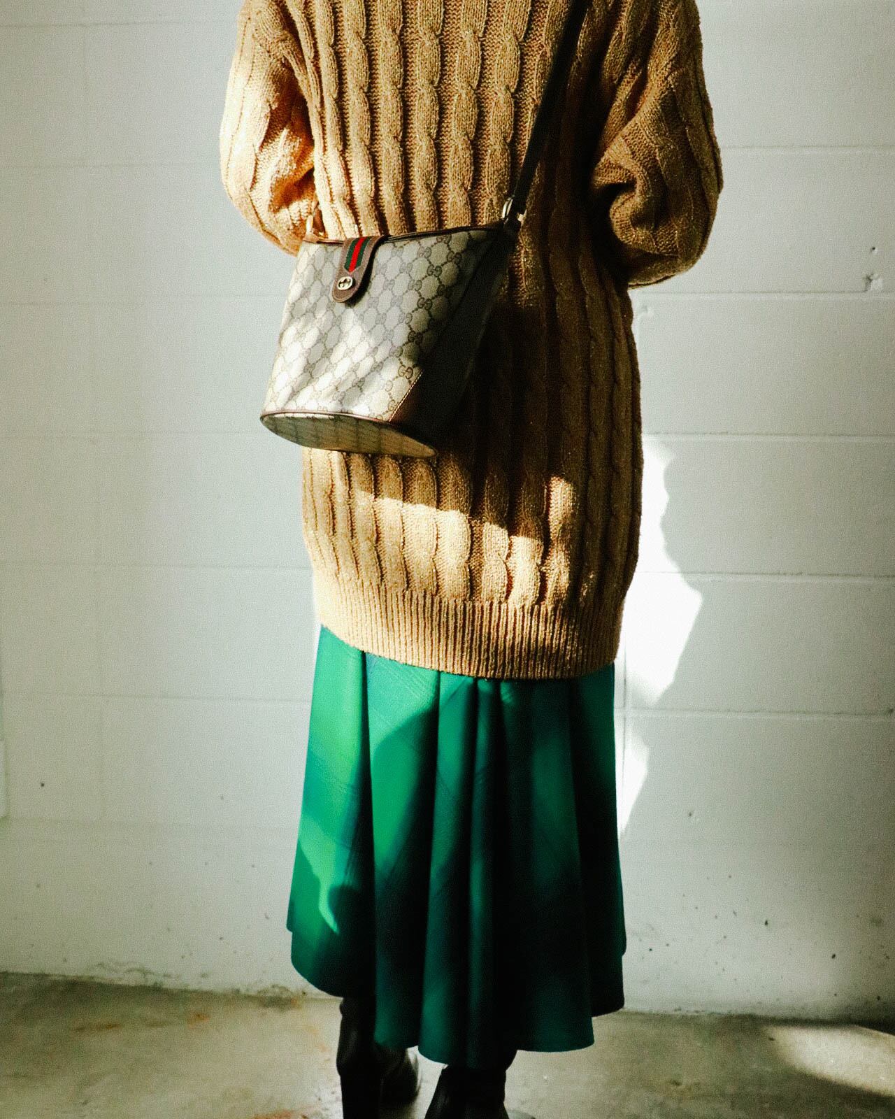 珍しいバゲットタイプ。グリーンとレッドのシェリーラインのアクセントが効いたオールドグッチならではのデザインです。容量の安心感もあり、エージレス&トレンドを気にせず使いやすすくオススメのバッグです。
