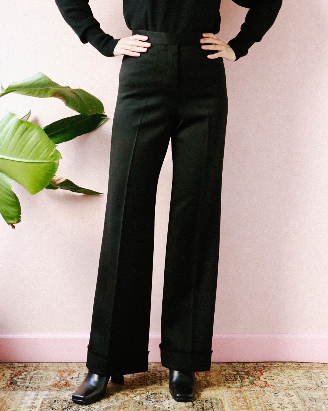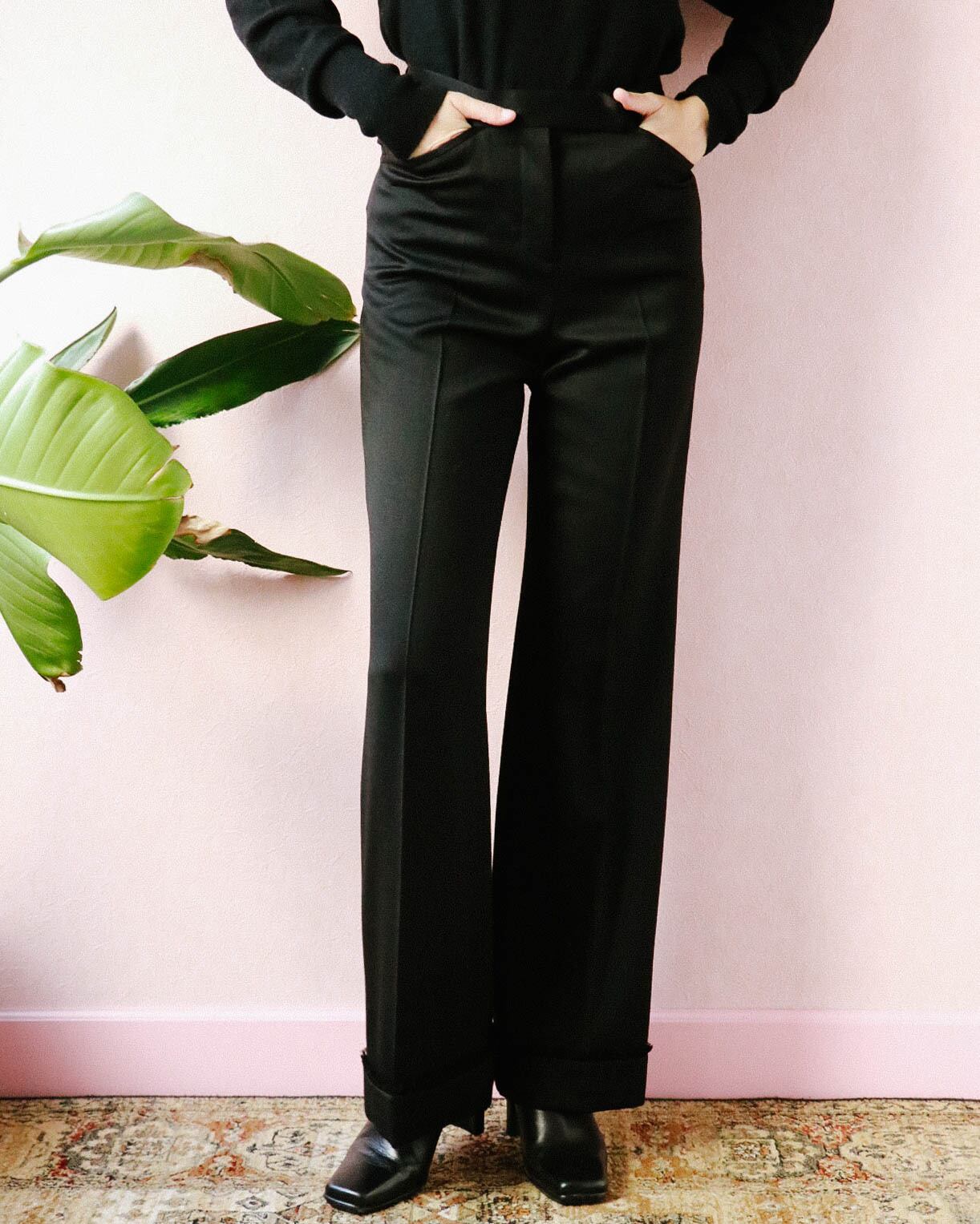 ウールのみとは思えないような滑らかで上質な素材が心地良い、シャネルのブラックパンツ。