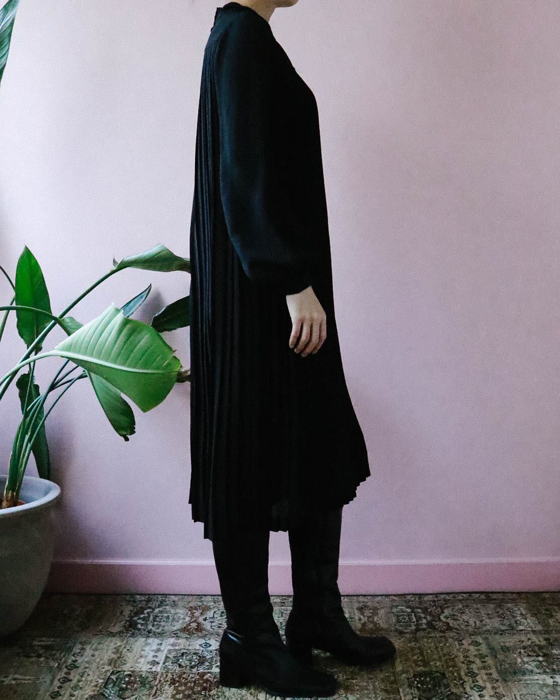 80s black pleated dress