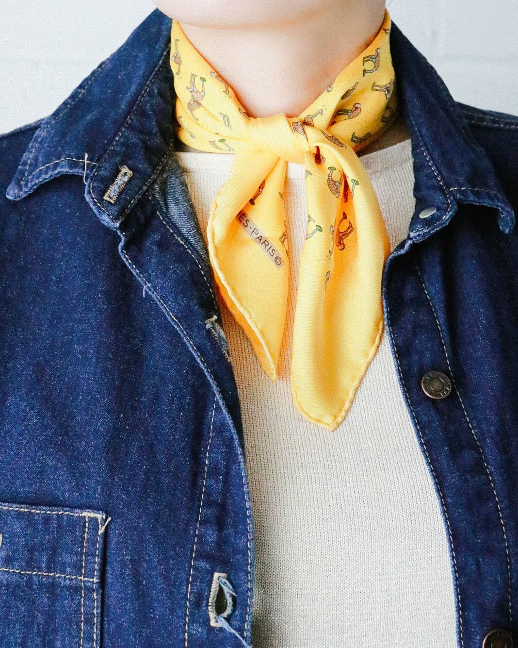 HERMES yellow ostriche mini scarf