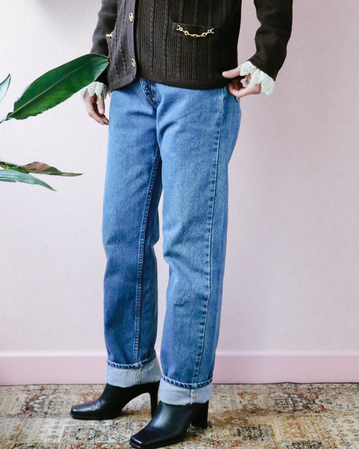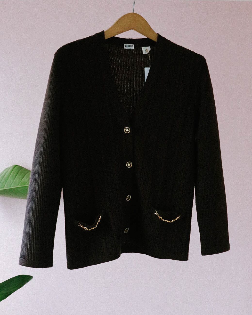 セリーヌらしいポケットに施されたチェーンが可愛いニットカーディガン。羽織、トップスとして春先にマッチするアイテム。