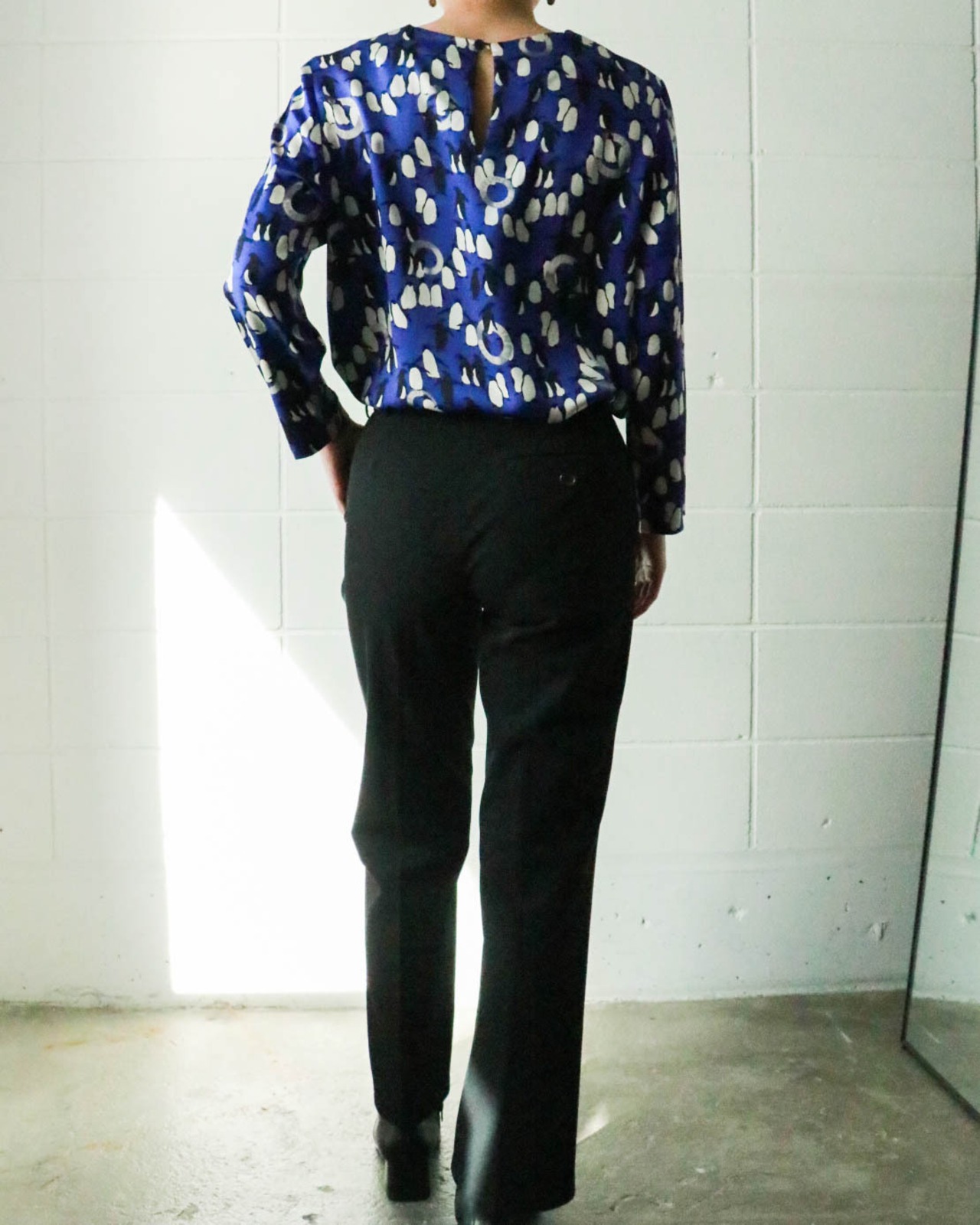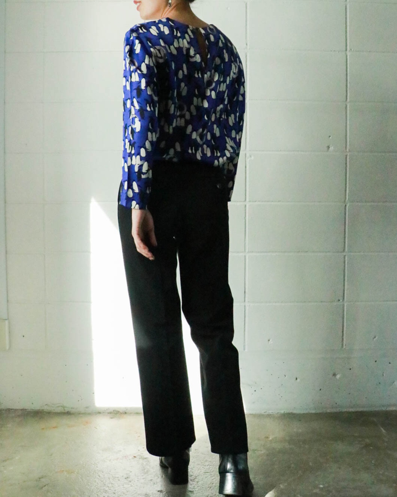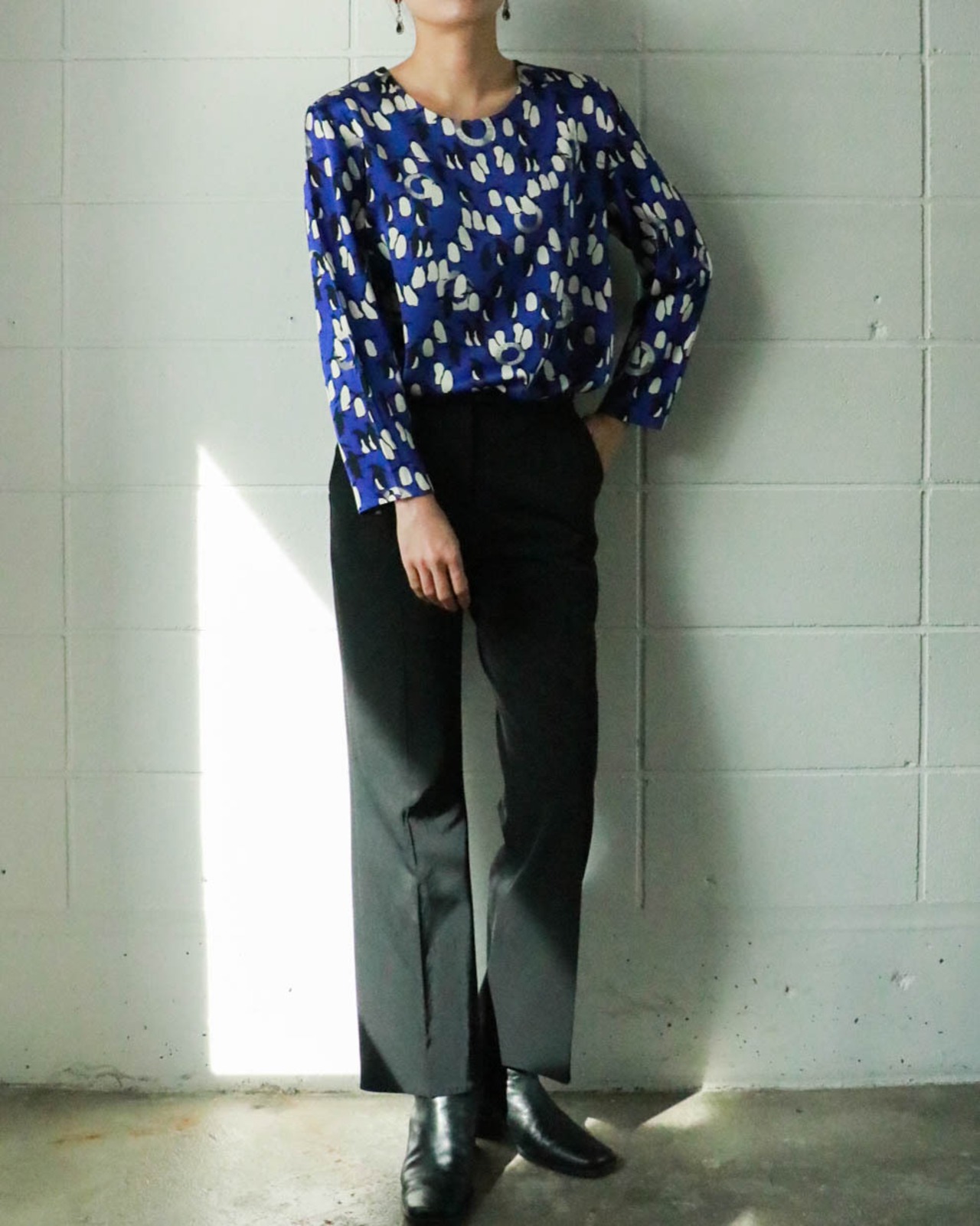 ほのかな光沢感のあるポリエステル素材でシワになりにくく、長いシーズン着れるのも嬉しい。