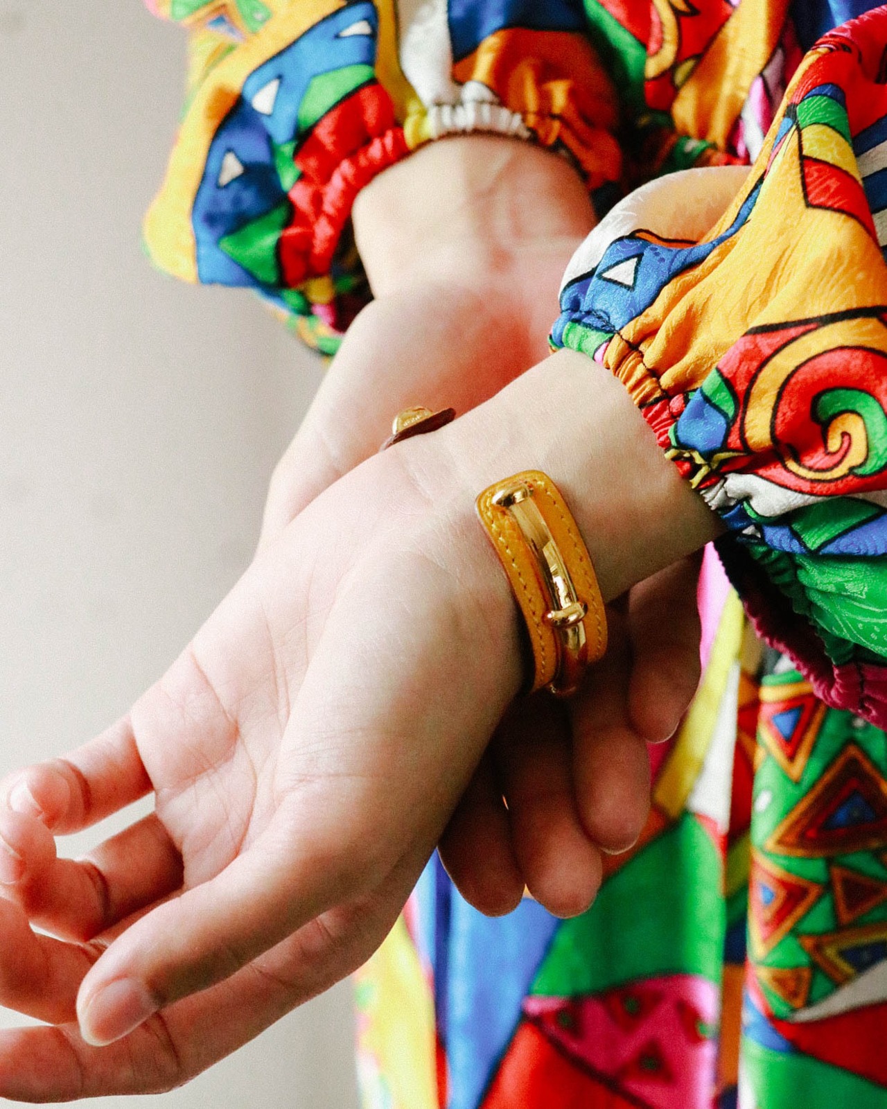 エルメスのバングル"アガタ"が入荷しました。マットなイエローレザーをベースにジュエリーのように輝くゴールドアクセントが手元をエレガントに演出します。