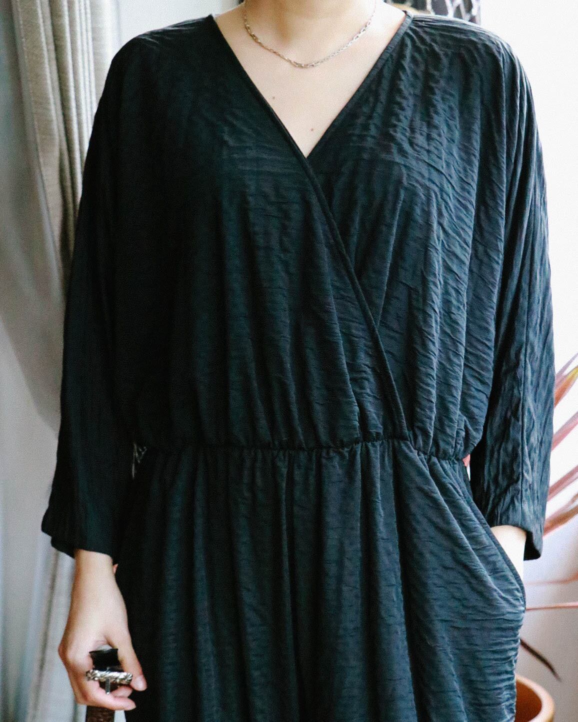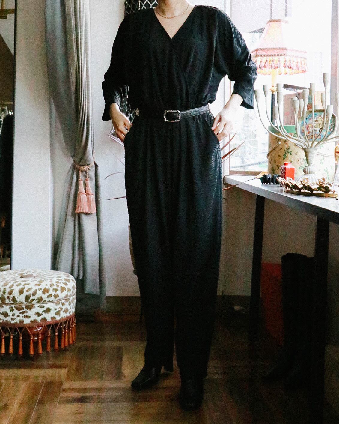 難易度が高そうなイメージのオールインワンも、ブラックをチョイスすればあっという間にモードな着こなしが完成します。インナーにハイネックを入れたレイヤードスタイルでこなれ感を演出。
