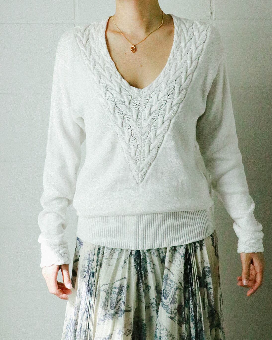 季節感を表すオールホワイトのニットはディオール-スポールラインのもの。