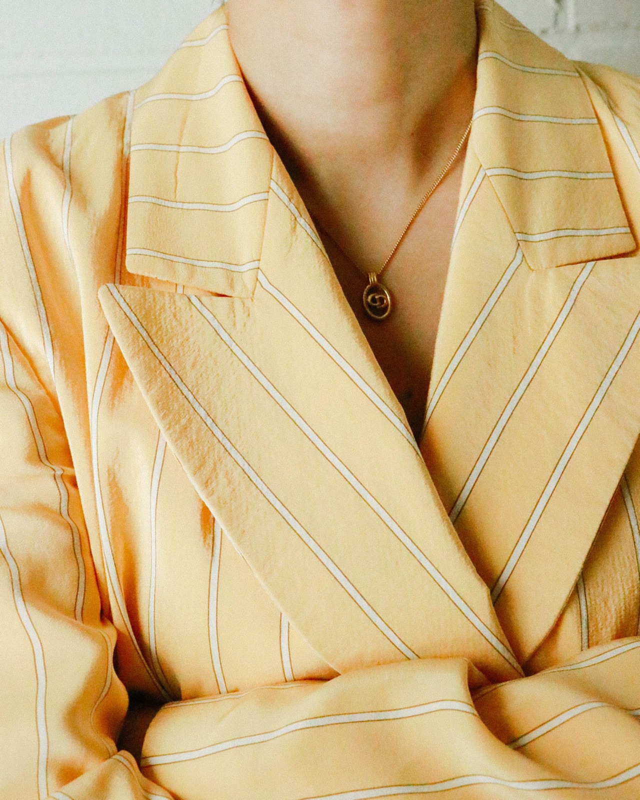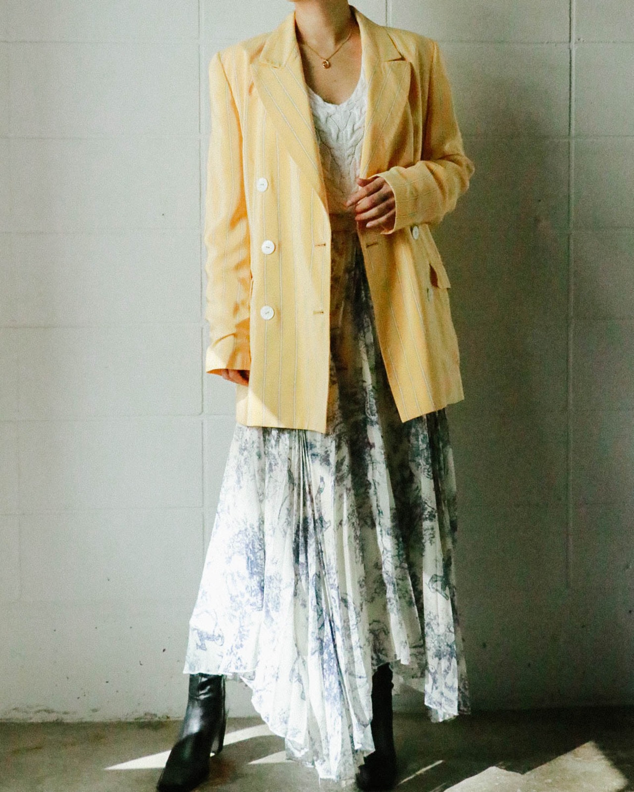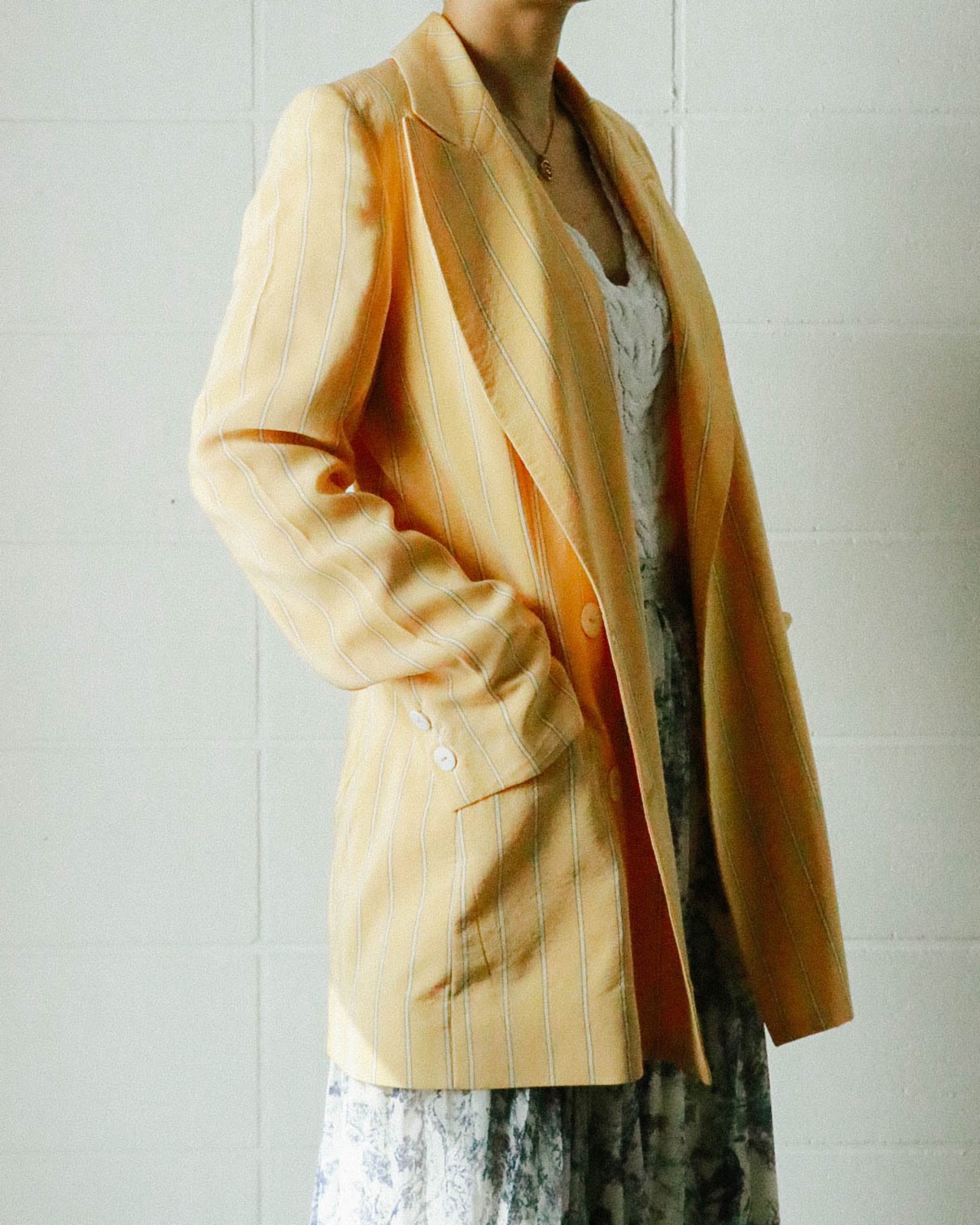 ダブルのかっちり感を柔和にみせるテクニックを感じられるディティールです。