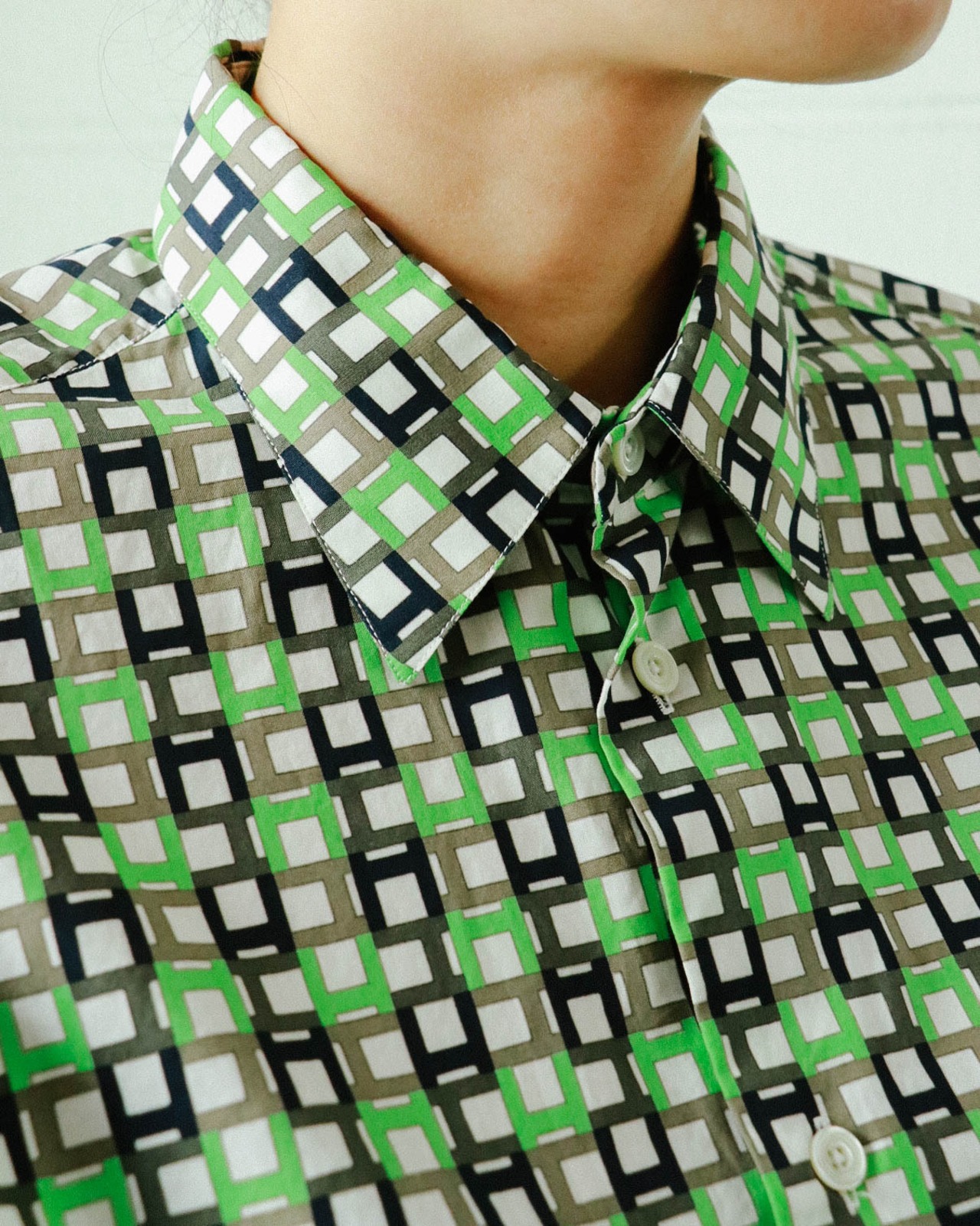 サラッとした軽やかなコットン100%素材!総柄はシワも気になりにくいので重宝する。