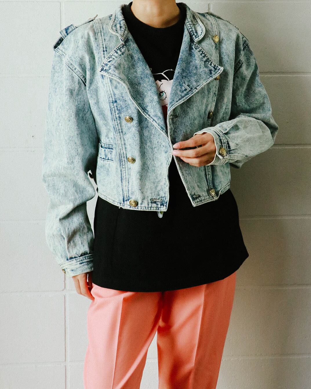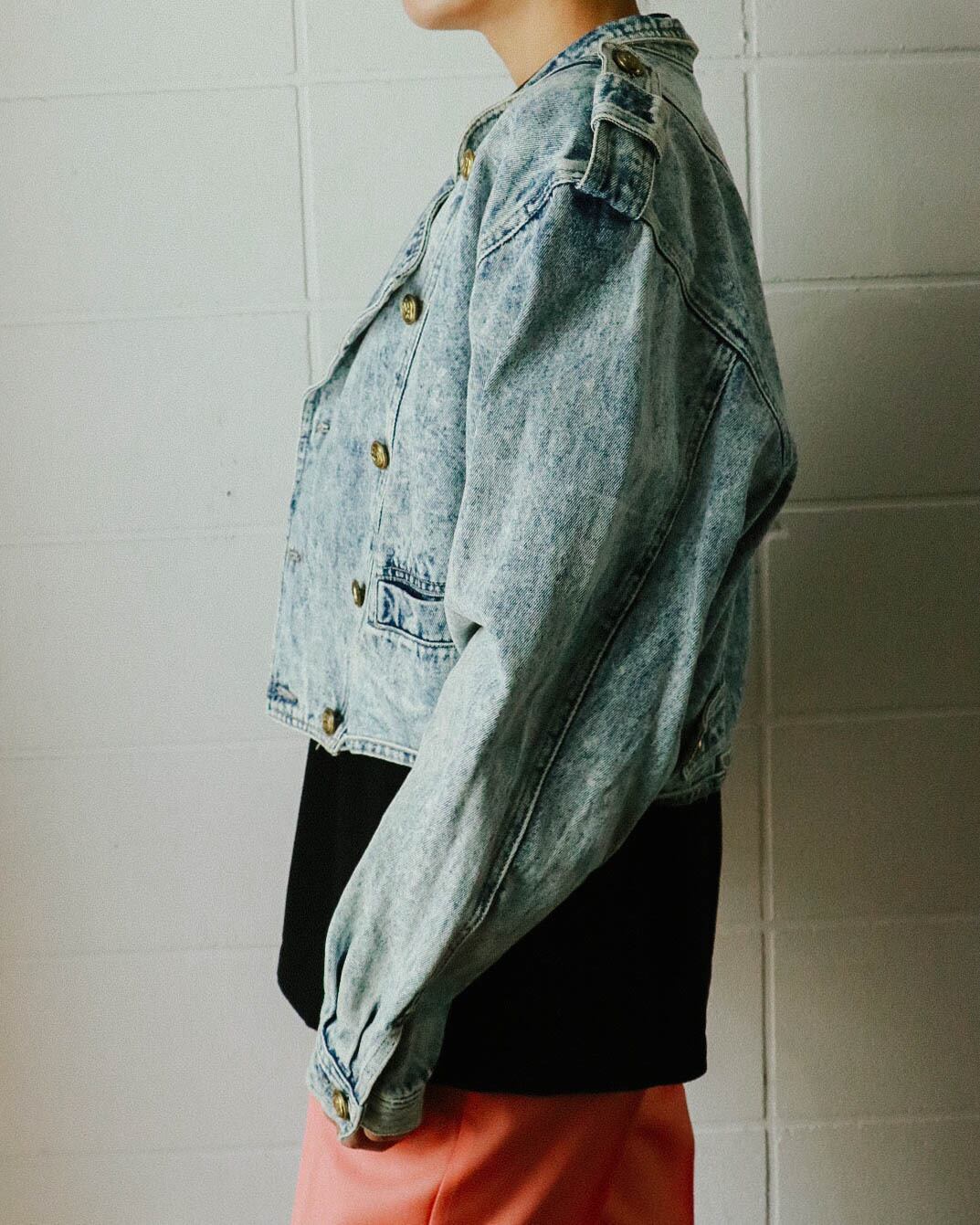 春アウターの大本命、デニムジャケット。80'sらしいケミカルウォッシュ。