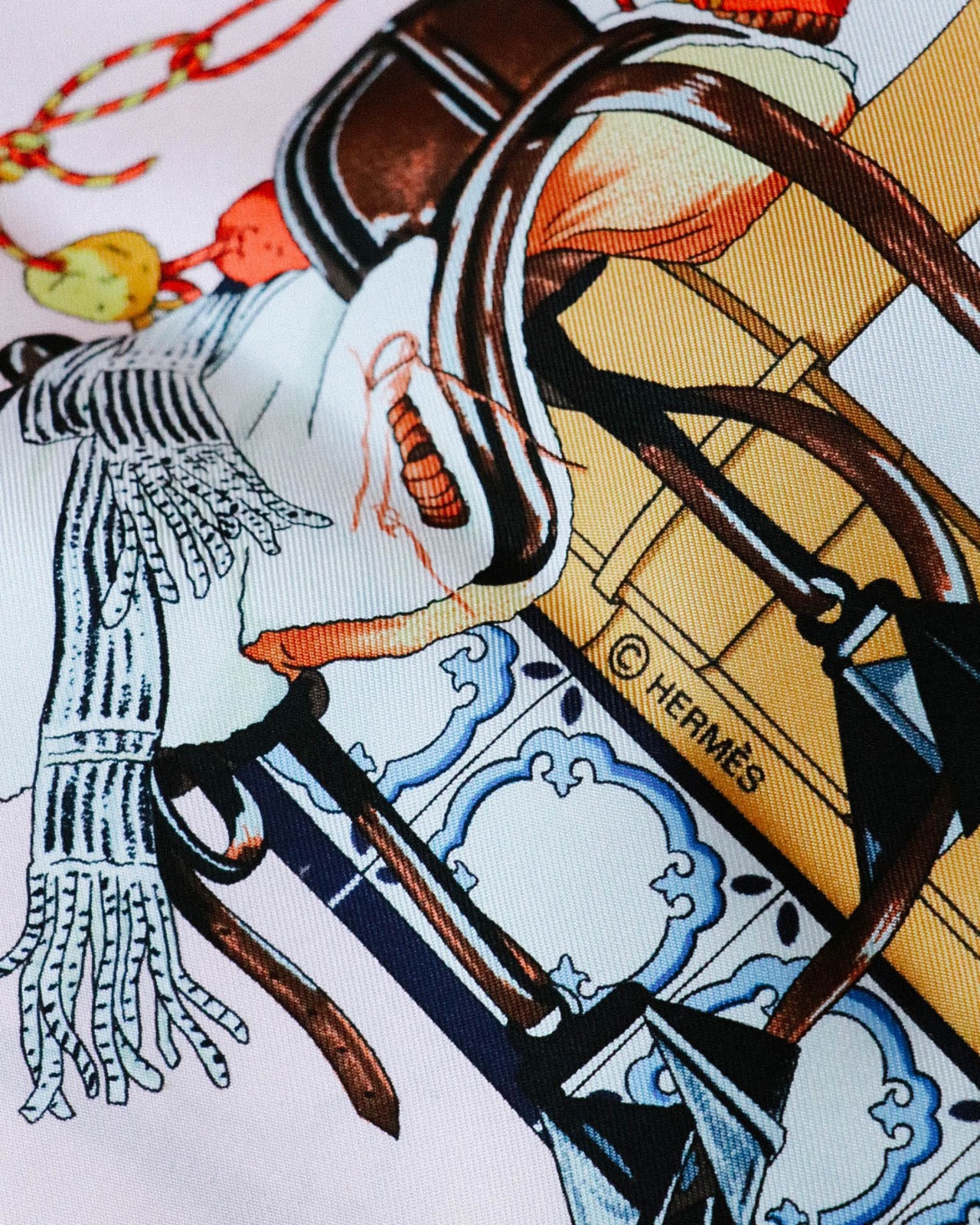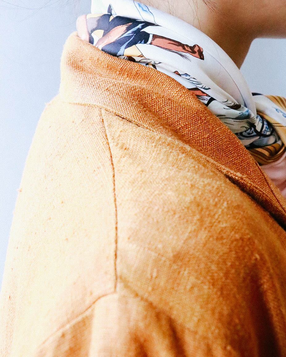 エルメスの世界観が詰まったストーリー性のある王道スカーフ。デザインの豊富さから現行、ヴィンテージ問わずつい集めたくなってしまうスカーフ 。折りかた、結び方で色々な遊びができるアレンジ能力の高いところがいい。洋服では取り入れにくい色味などもぜひこういった小物で挑戦してみてはいかがでしょうか。