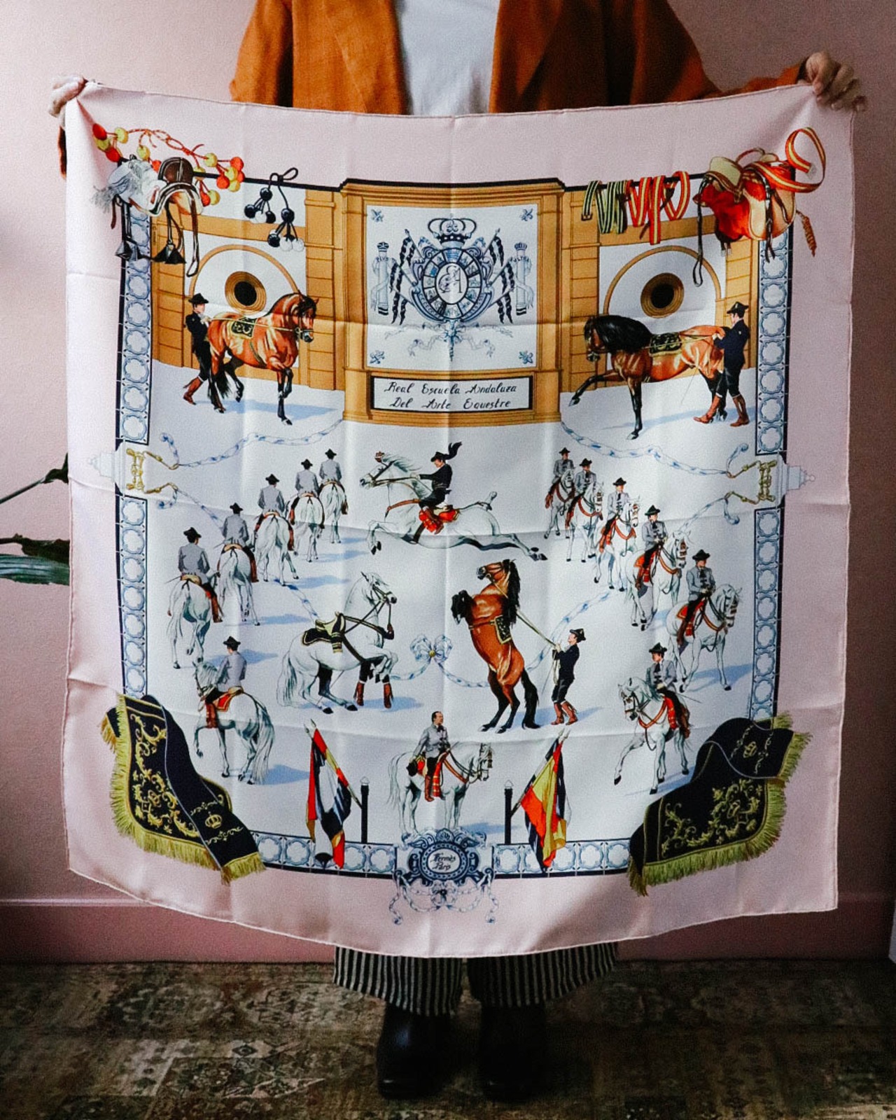 HERMES pink horse scarf