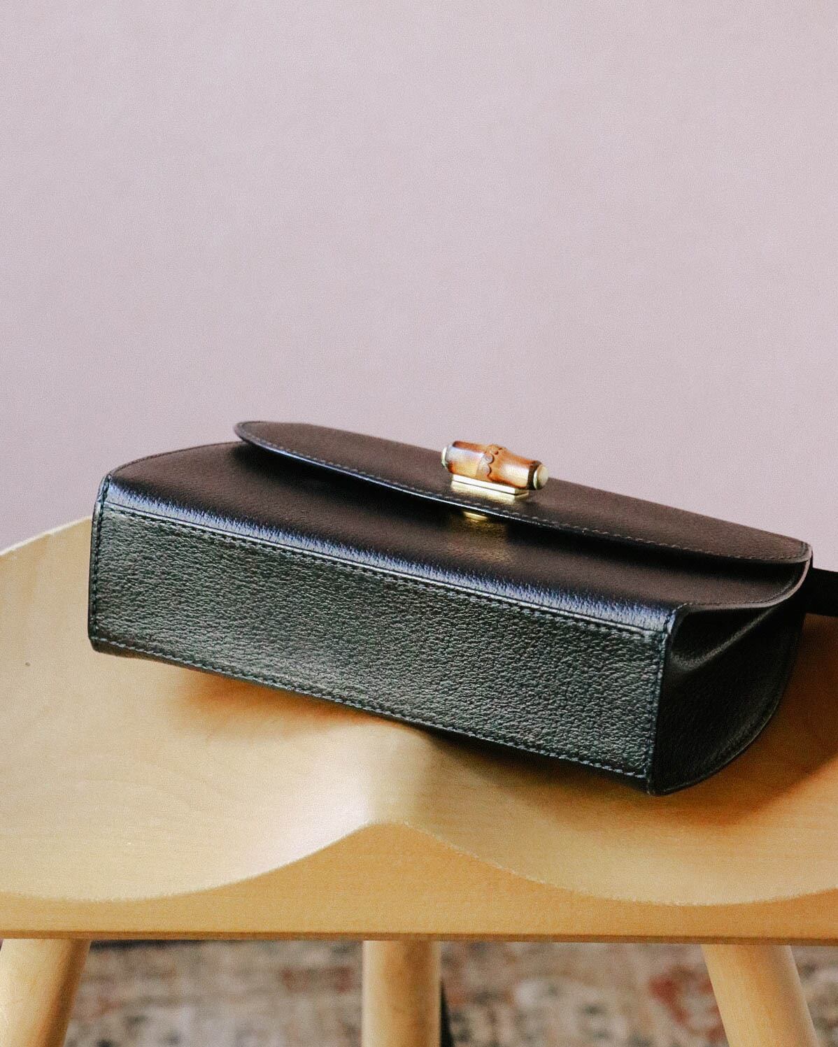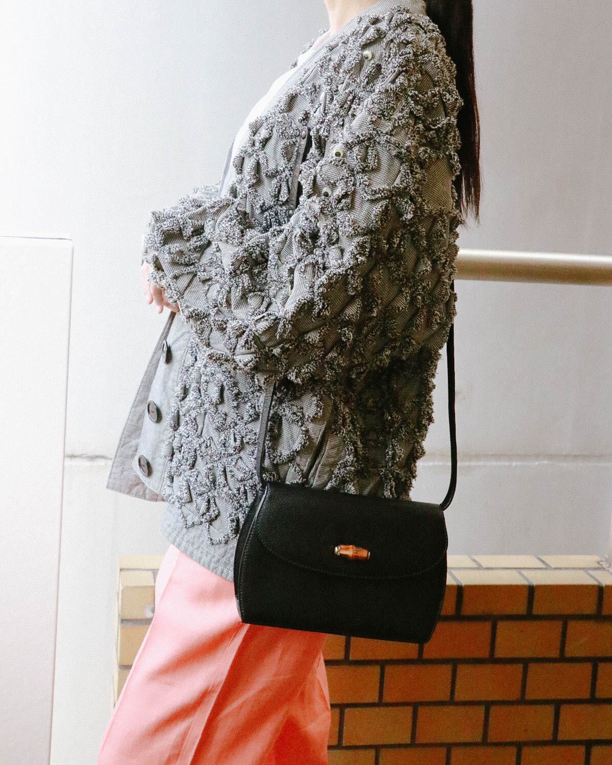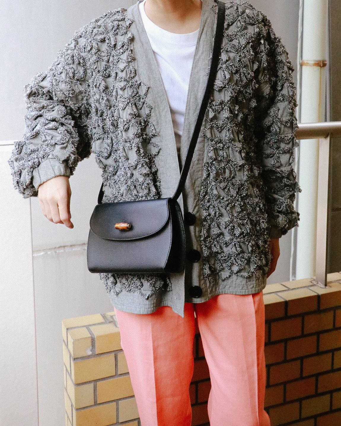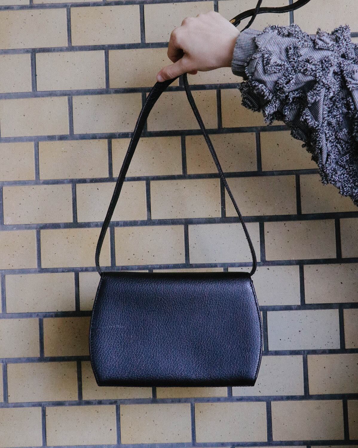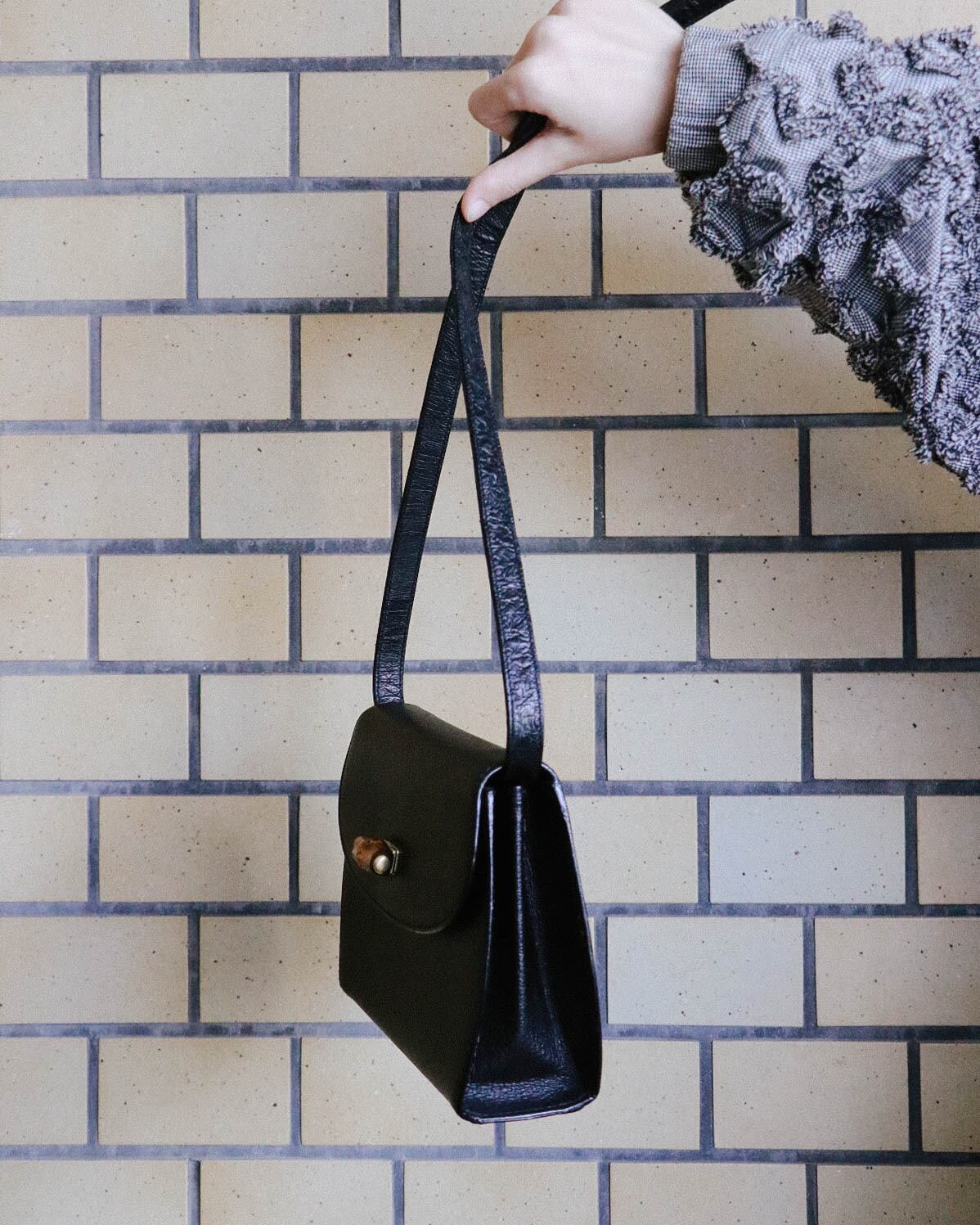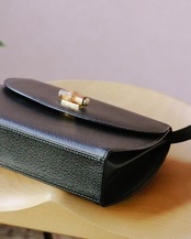 シンプルな見た目が嬉しいこちらのバッグは、オールドグッチのもの。程よい容量感に収納しやすい大きさ。フロントのバックルがバンブになっていてーデザイン性の豊さも感じます。ブラックバッグは、飽きが来ず永くご愛用いただけるのでおすすめです。