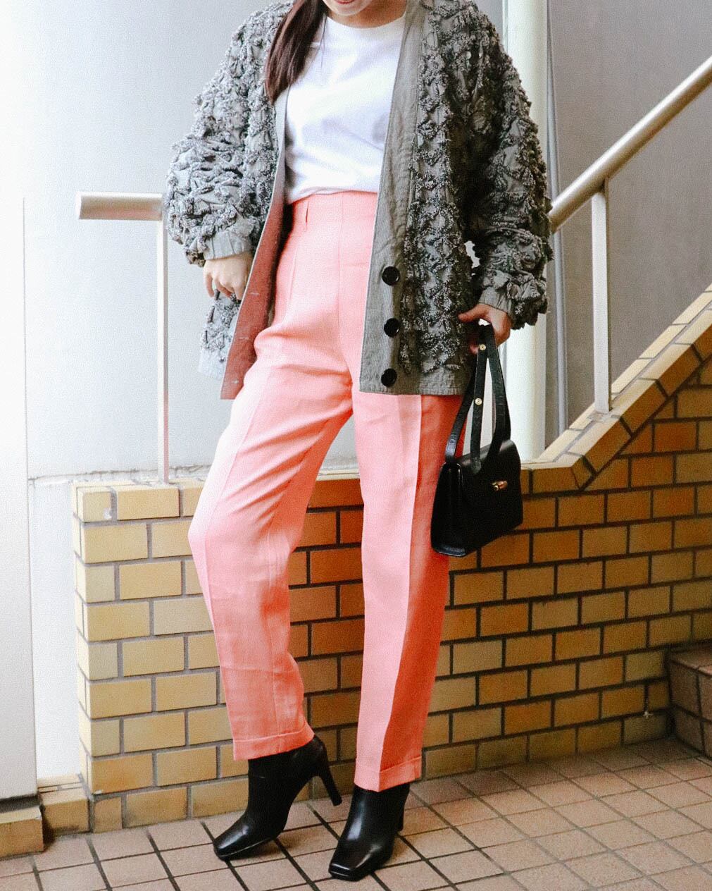 グレーを基調とした配色でどんなコーディネートにも馴染みやすく、普段のコーディネートにだばっと羽織るだけでグンとこなれ感がアップ。