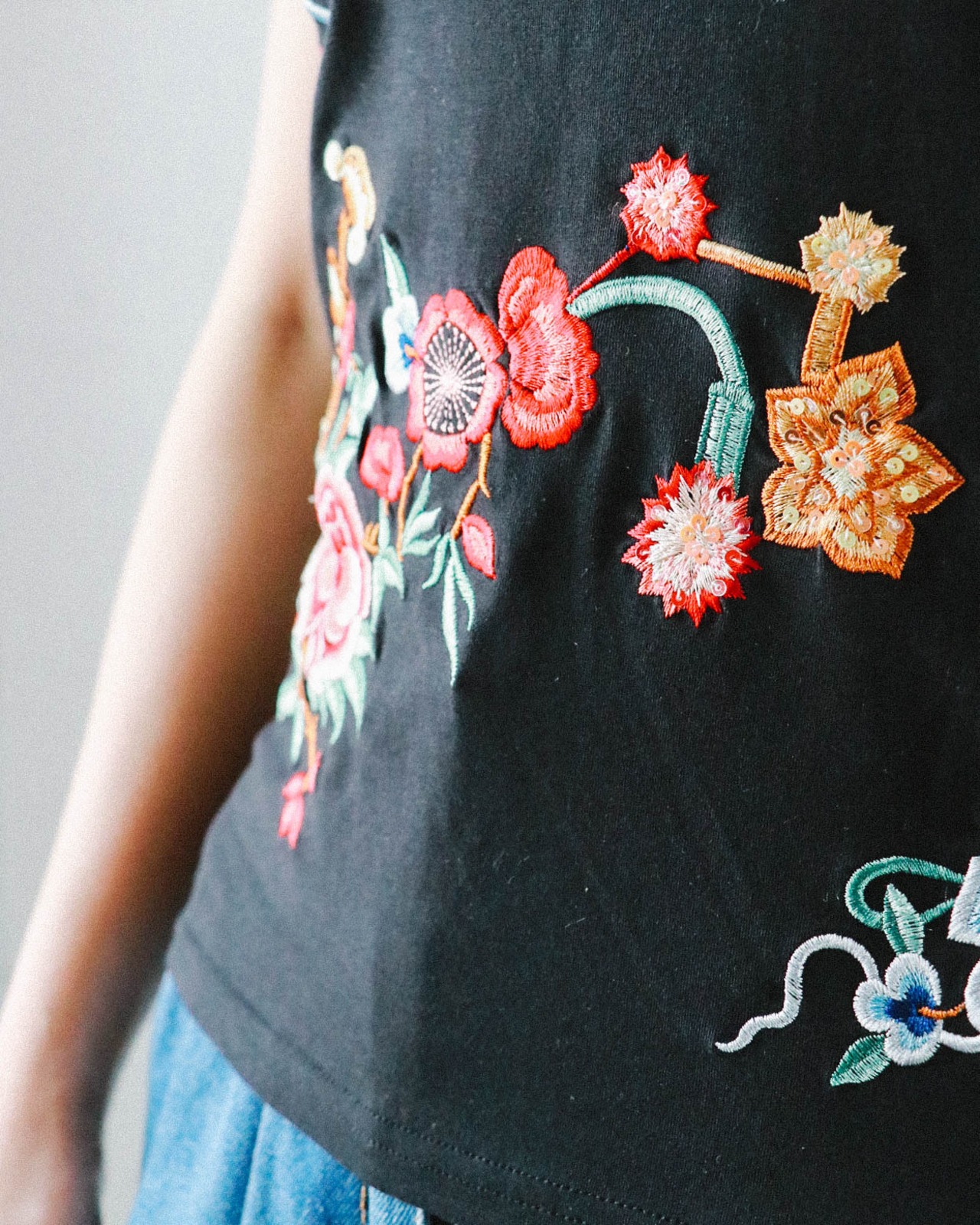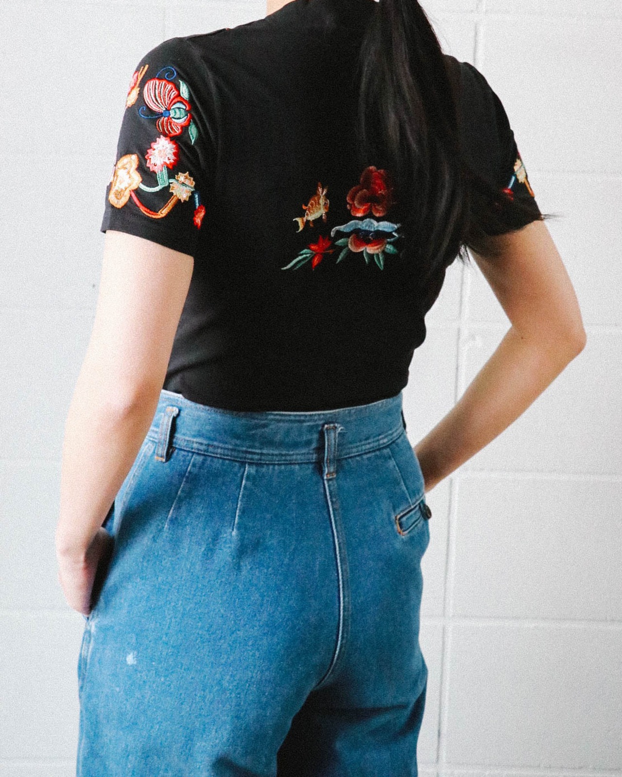 華やかな刺繍デザイン、ストレッチの効いたコンパクトボディが魅力的。