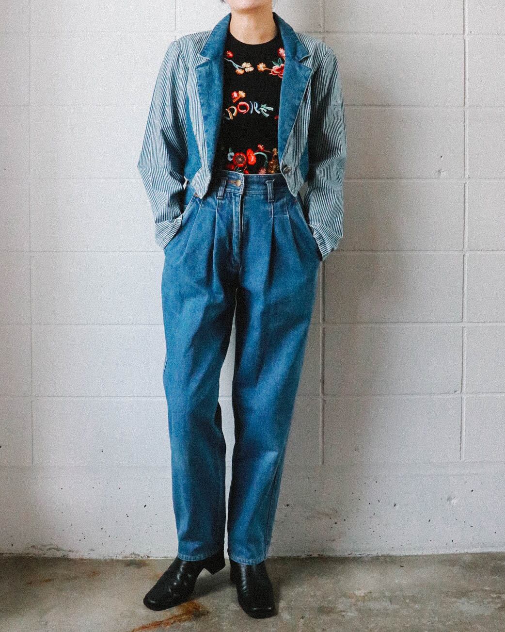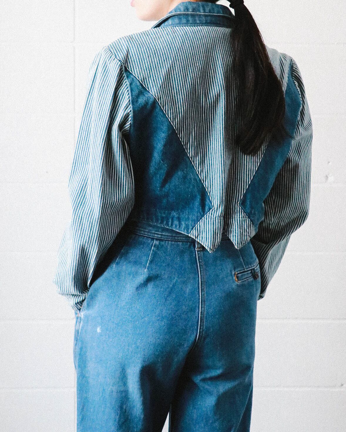 denim striped cropped jacket