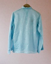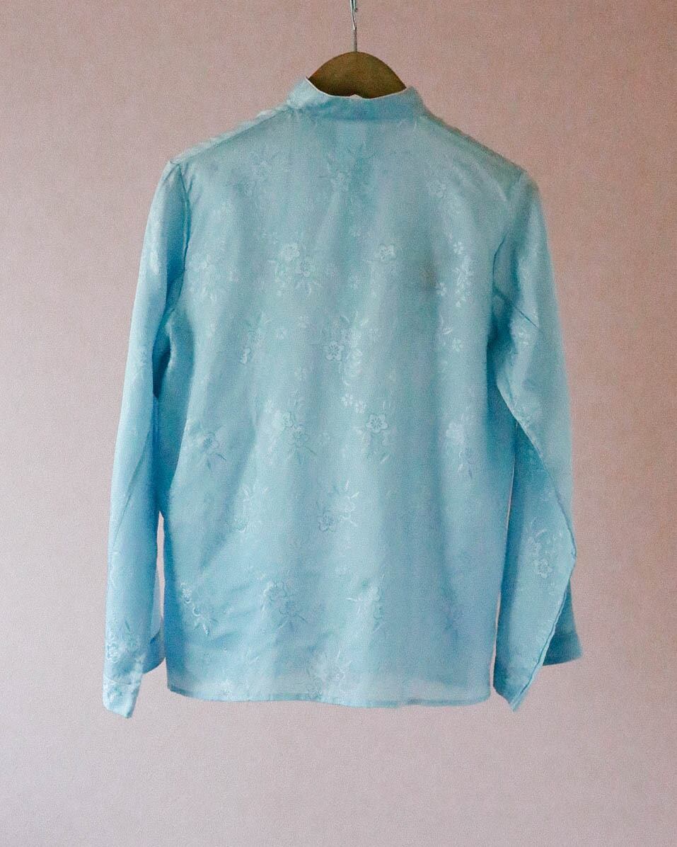 こちらは、爽やかなライトブルー地にお花の刺繍がアクセントになった美しい一品。