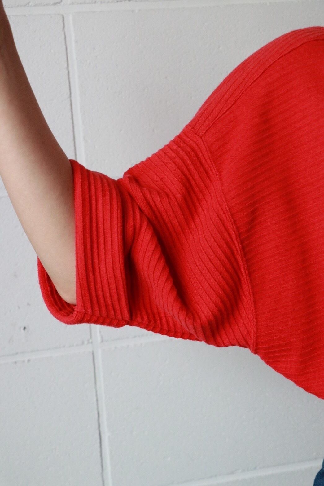 メンズも着れるサイズ感が可愛い。綿ポリでボーダー状に凹凸のある生地は真夏でも着心地が良くてお勧め。タンクトップやロングスカート、バイカーショーツなどレイヤードスタイルも楽しんで!