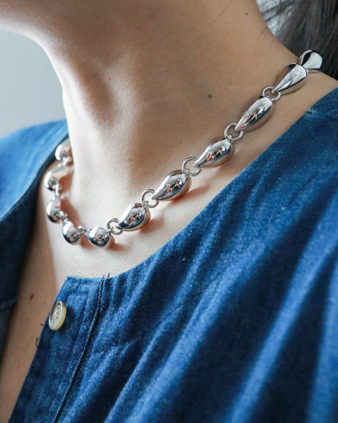 艶めくドロップモチーフが連なるデザインでデニムやTシャツのカジュアルにもパーティーシーンやモードなスタイリングにも合わせやすい。