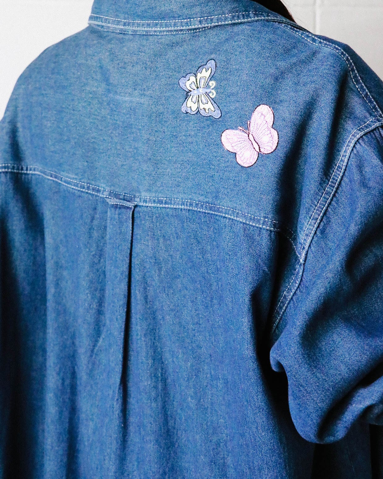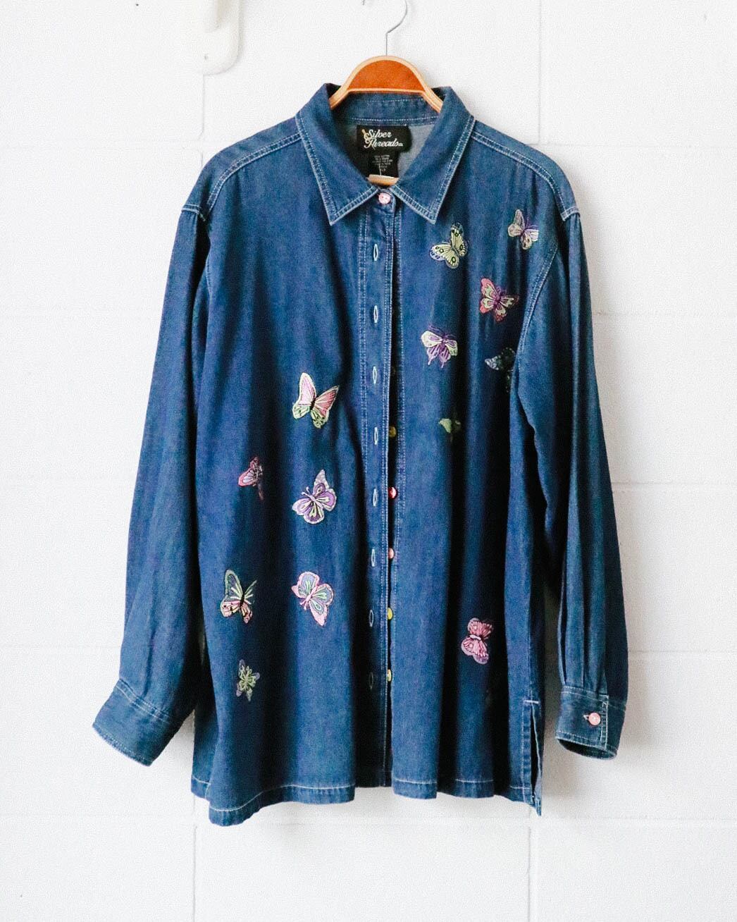Butterfly embroidery denim shirts