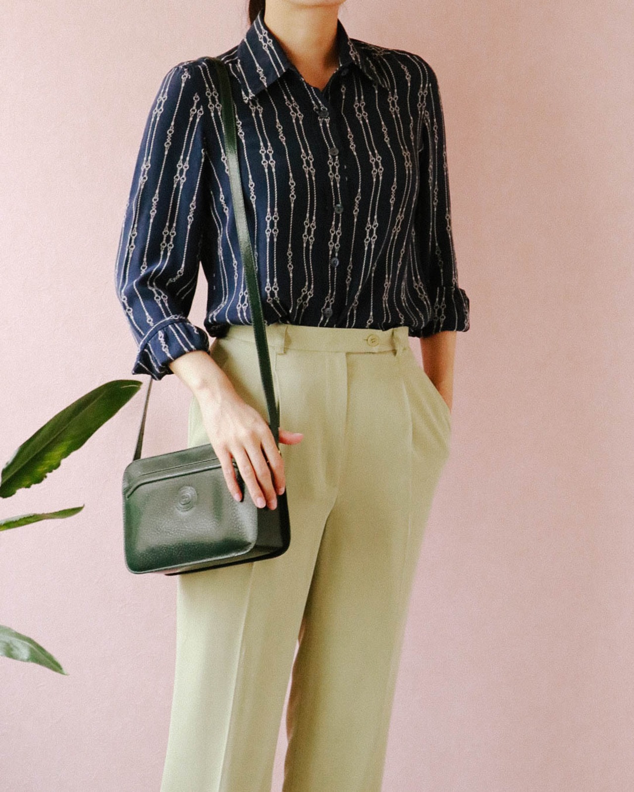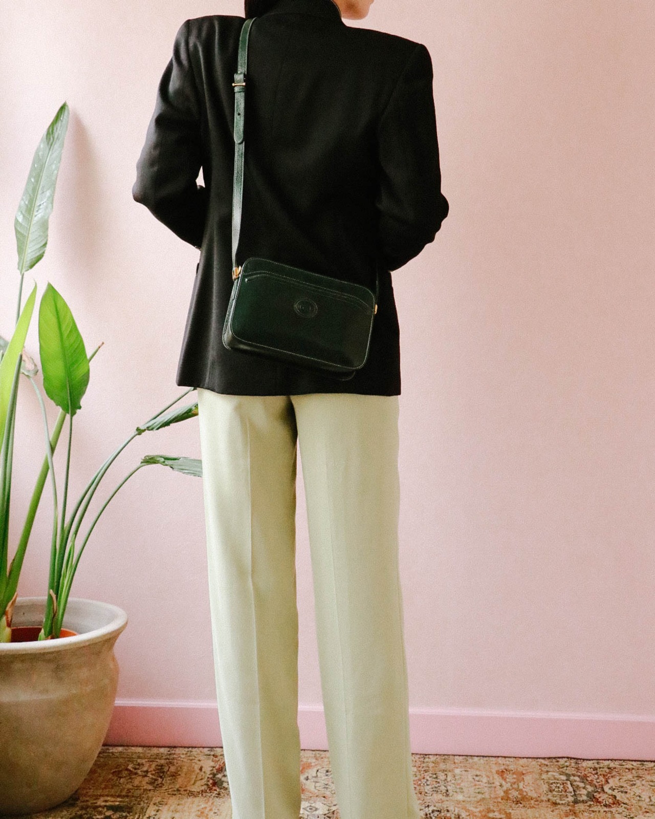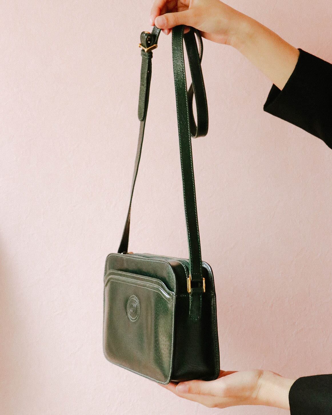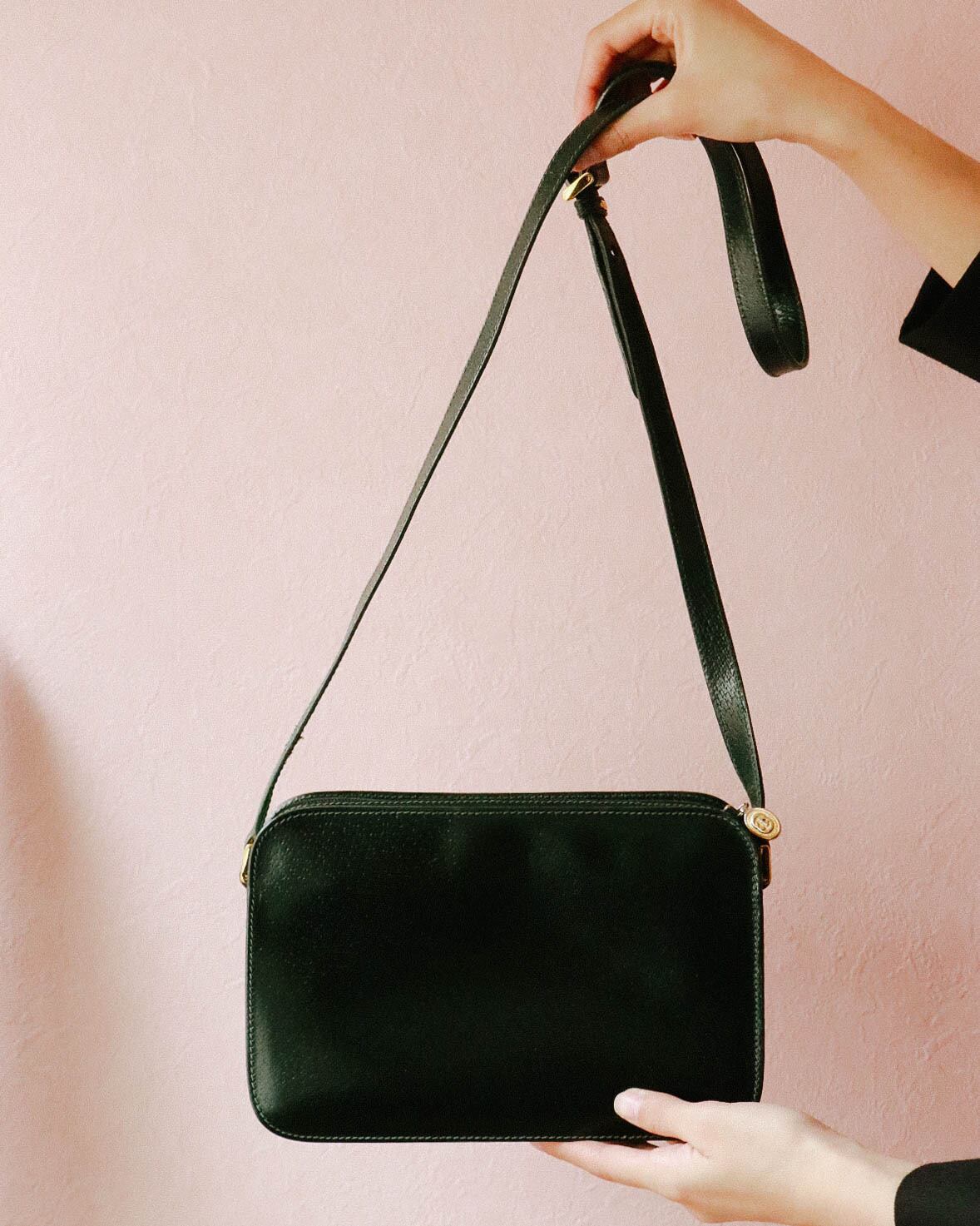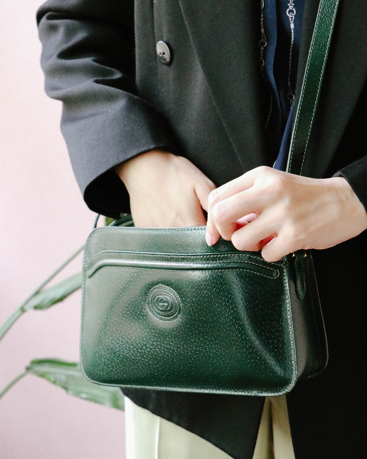 オールドグッチからダークグリーンカラーのショルダーバッグが入荷しました。クラシックなスクエア形ボディーに貴重品が十分入るバランスの良い大きさ。オールグリーンに金具のゴールドが上品なアクセントと与えます。一年中大活躍できます!