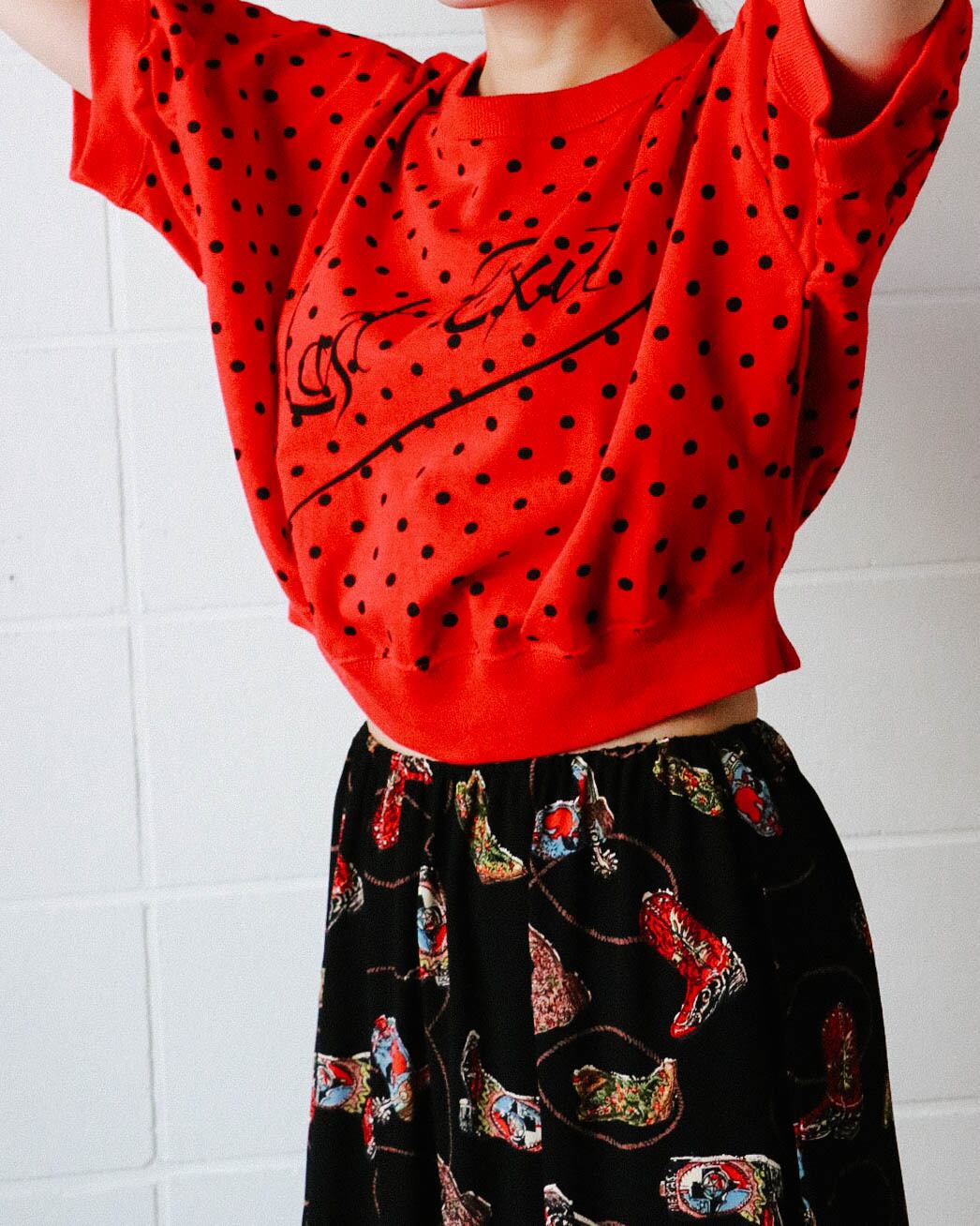 ストロベリーデザインのような愛らしい80年代のトップス。