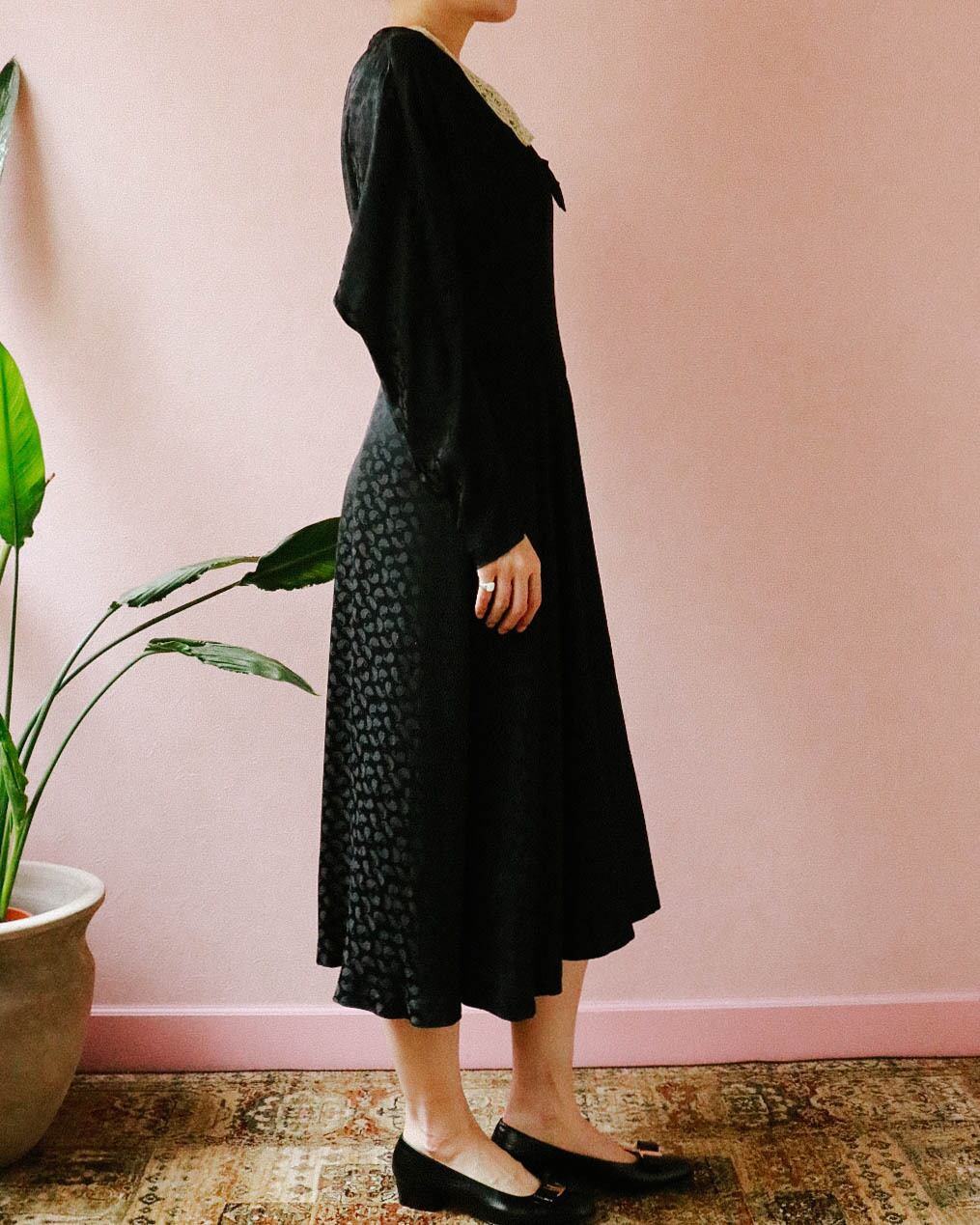 80's paisley black dress