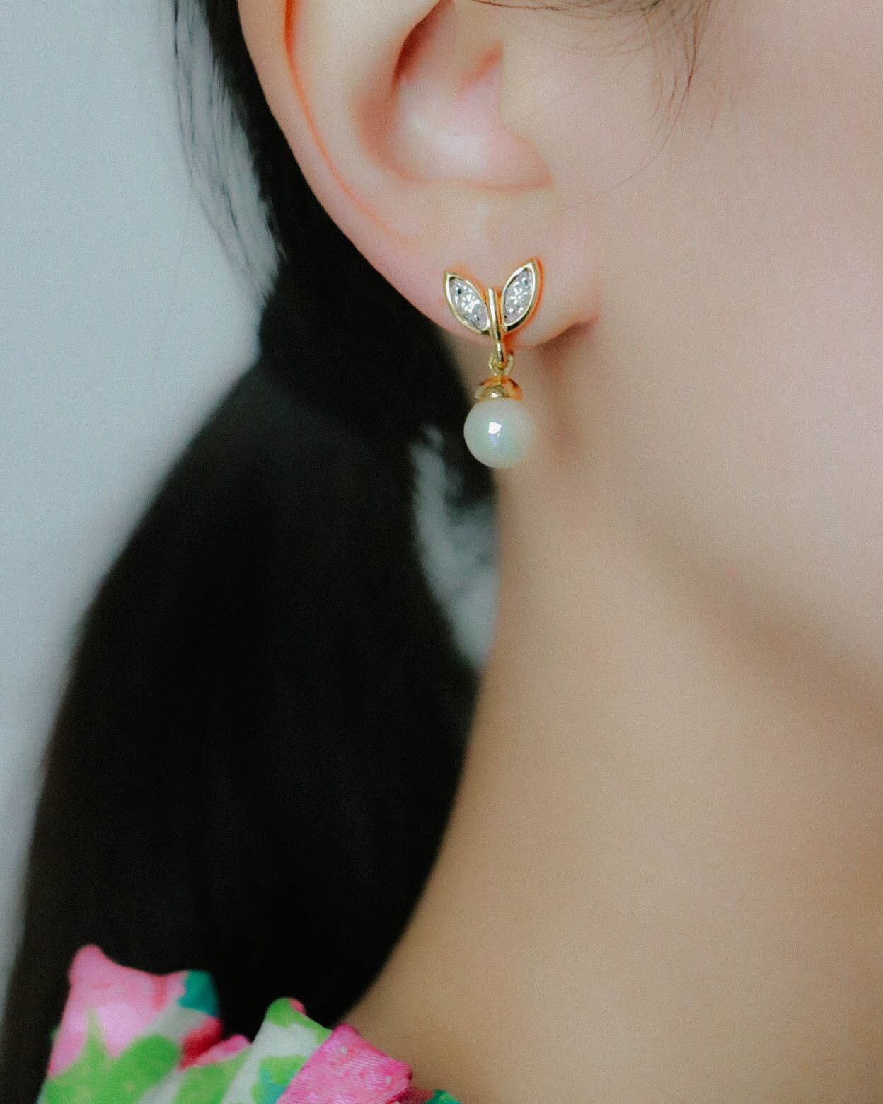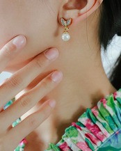 小粒のエレガントなパールとアールデコのようなデザインのクロスオーバー感が特徴的です。